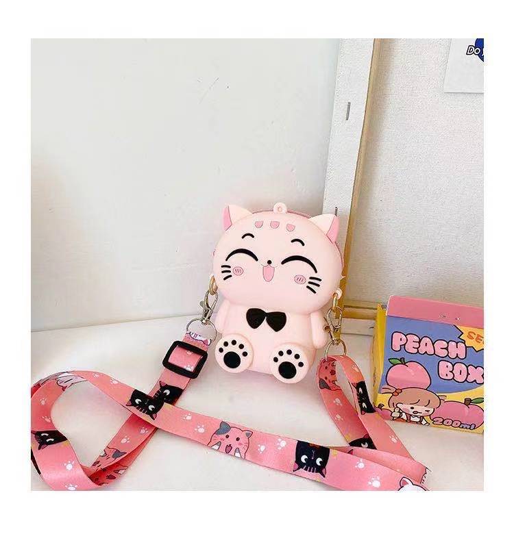 2023 새로운 동전 지갑 실리콘 크로스 바디 귀여운 만화 새끼 고양이 창조적 인 저장 가방 교수형 장식품 어린이 크로스 바디 가방스토어 가기