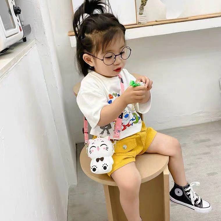 2023 새로운 동전 지갑 실리콘 크로스 바디 귀여운 만화 새끼 고양이 창조적 인 저장 가방 교수형 장식품 어린이 크로스 바디 가방