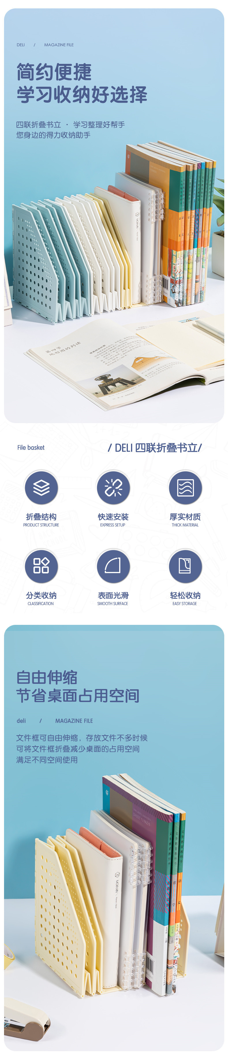 델리 TB506 쿼드 접이식 책 스탠드 학생 데스크탑 개폐식 책 스탠드 수축 박스 사무실 책상 파일 상자