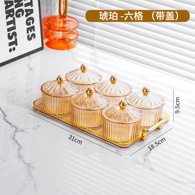 • 앰버 트레이 [6 그리드 호박색 줄무늬 PS 둥근 접시] 뚜껑