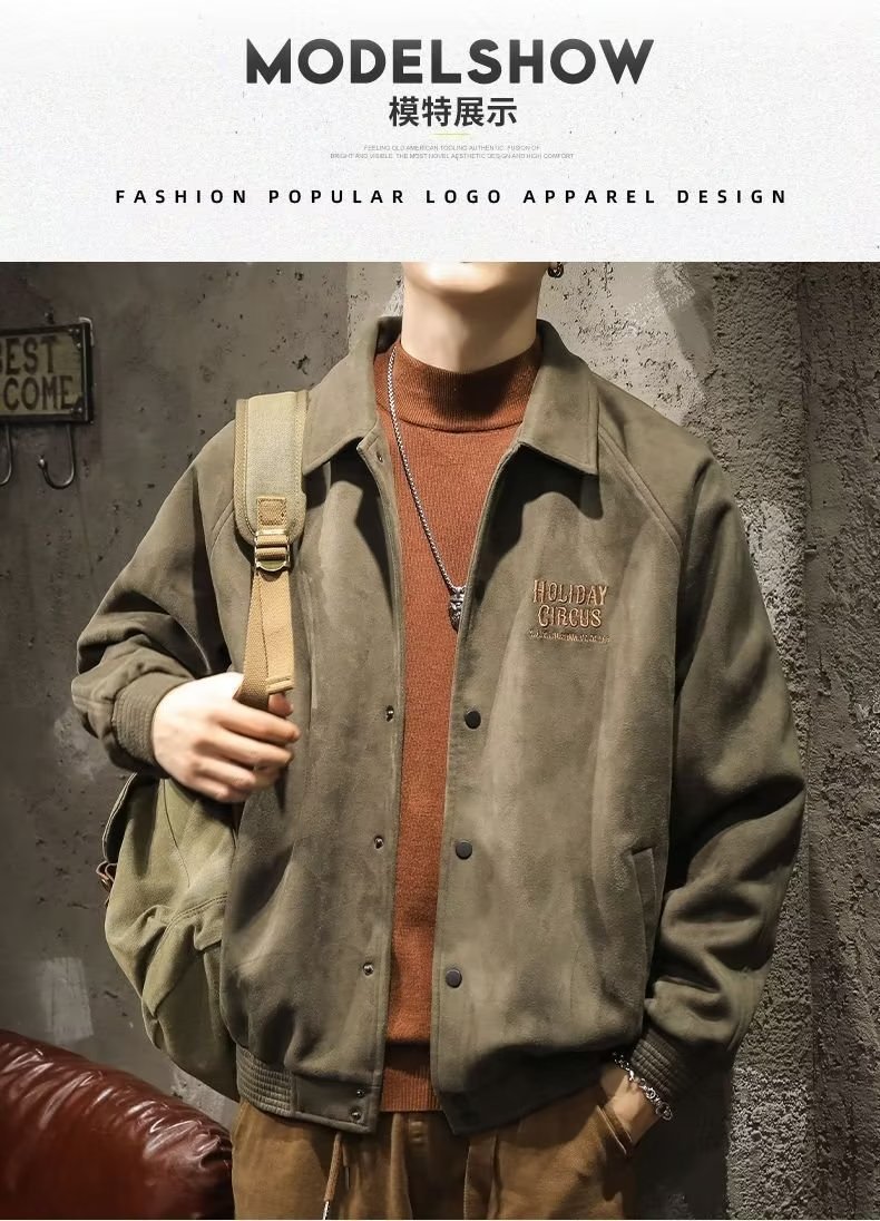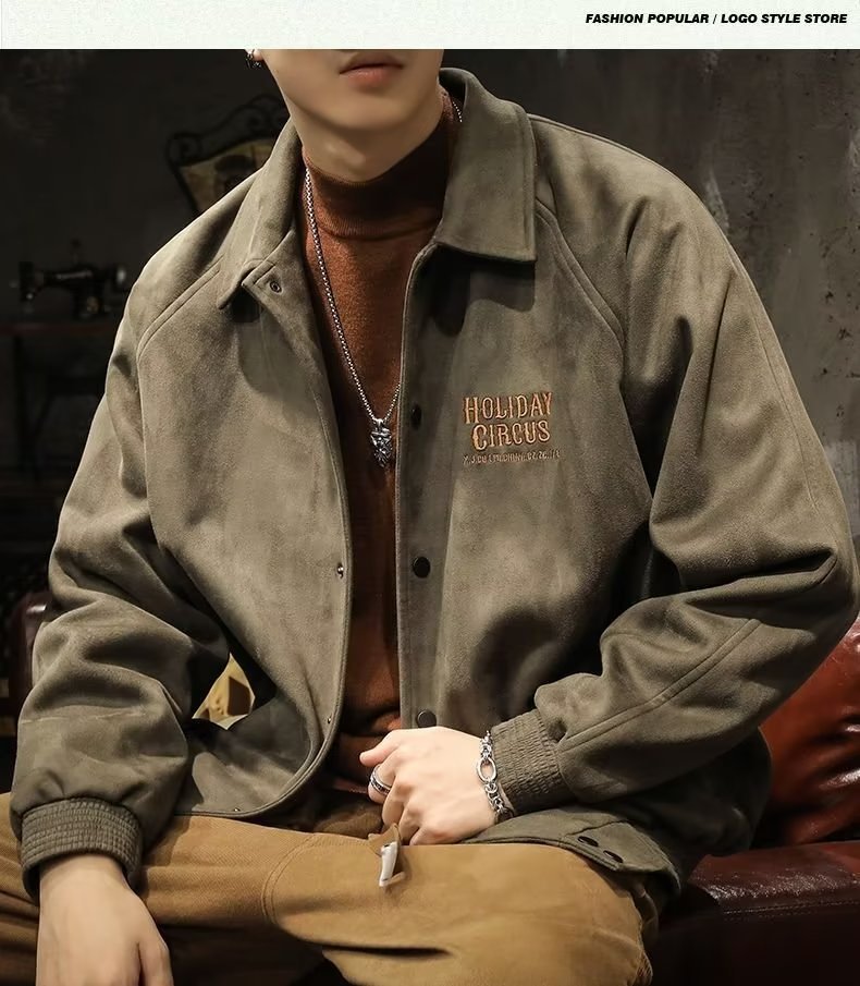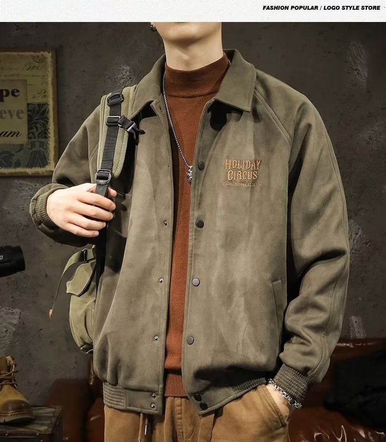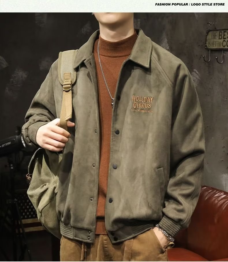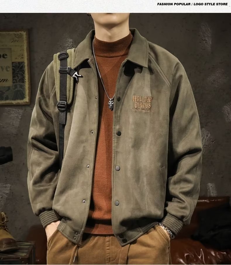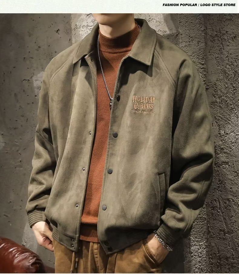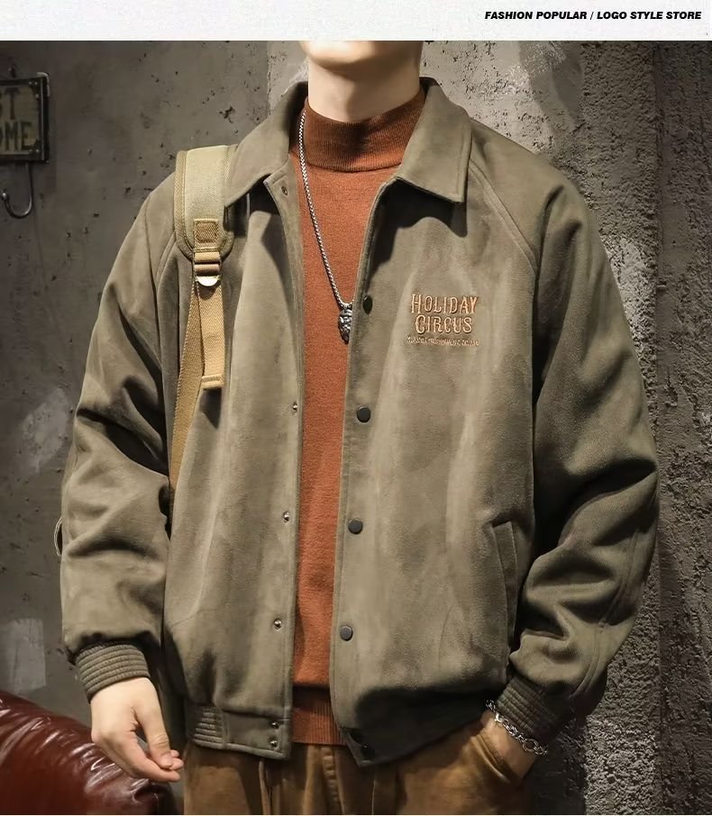 봄과 가을 미국 스타일 복고풍 스웨이드 옷깃 야구 세트 남자의 느슨한 캐주얼 재킷 모든 일치 유행 재킷 탑