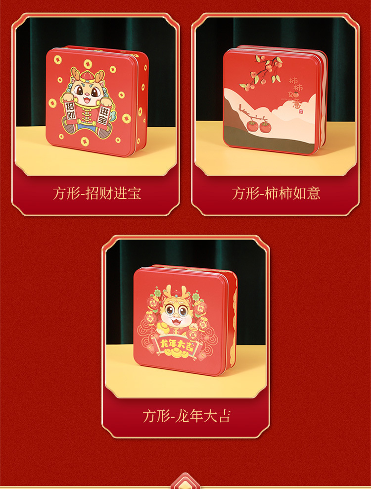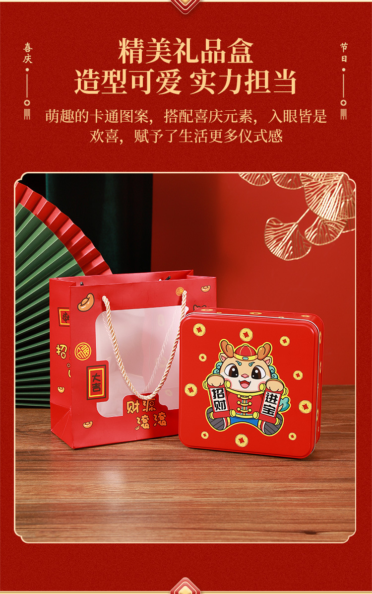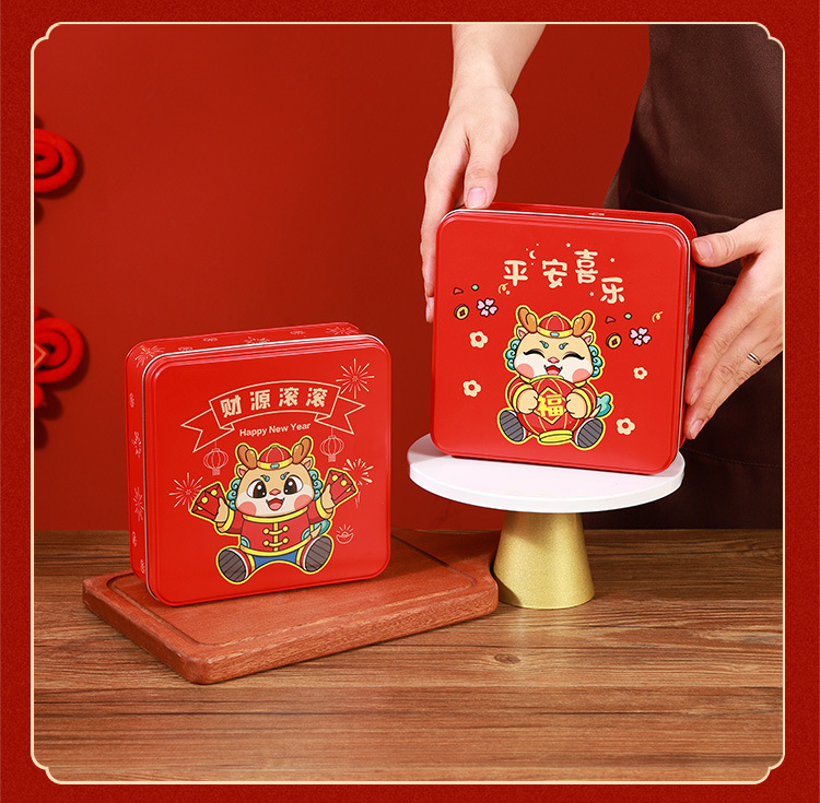 용의 해 새로운 사각 양철 쿠키 크래커 상자 웨딩 캔디 케이크 캔디 항아리 단철 선물 포장 상자