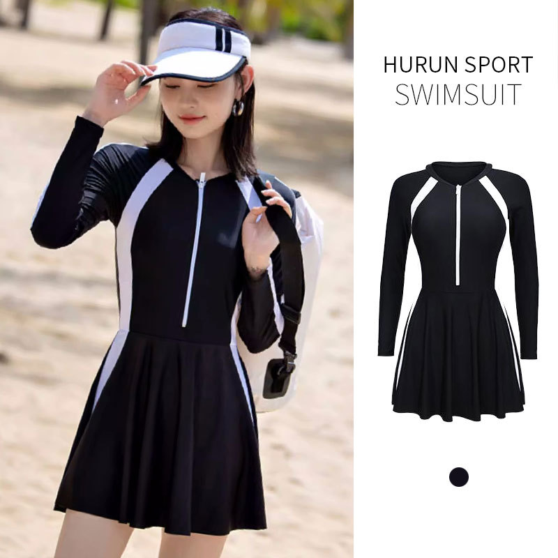 살짝 통통녀 슬림 수영복 보수적 인 2024 새로운 긴팔 원피스 온천 배꼽 원피스 스포티 스타일스토어 가기