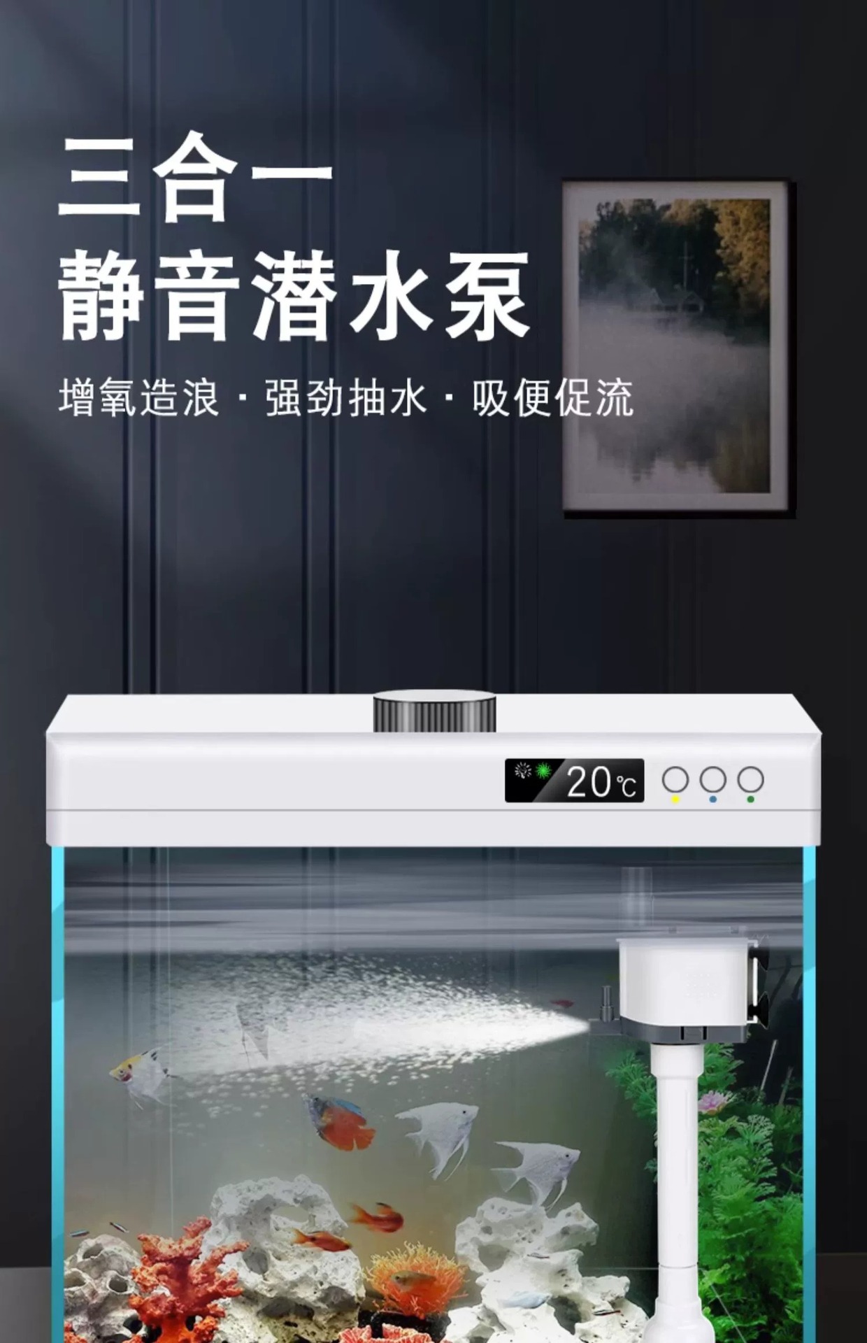 어항 필터 3 대 1 무음 잠수정 펌프 상부 필터 내장 산소 펌프 수족관 어항 순환 펌프