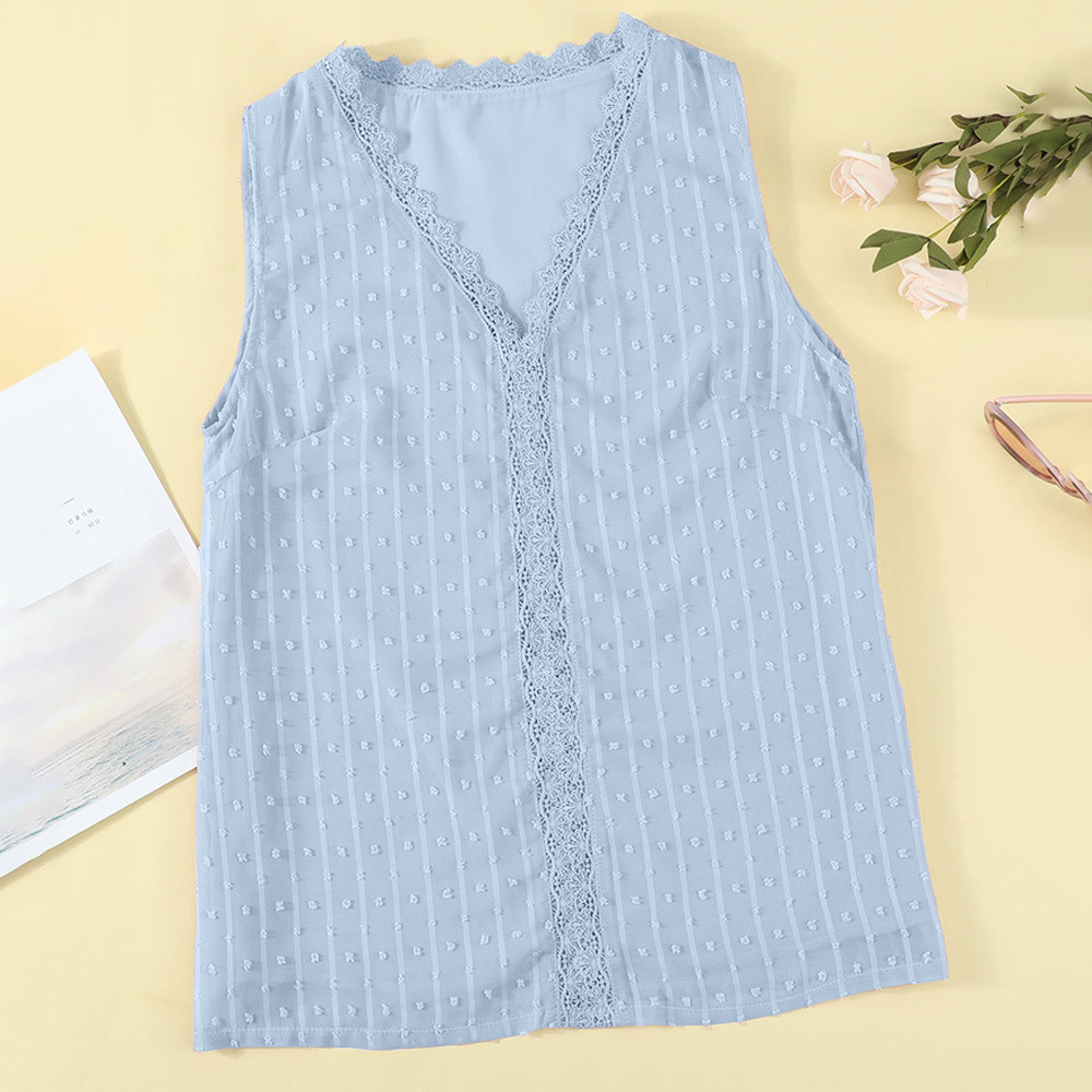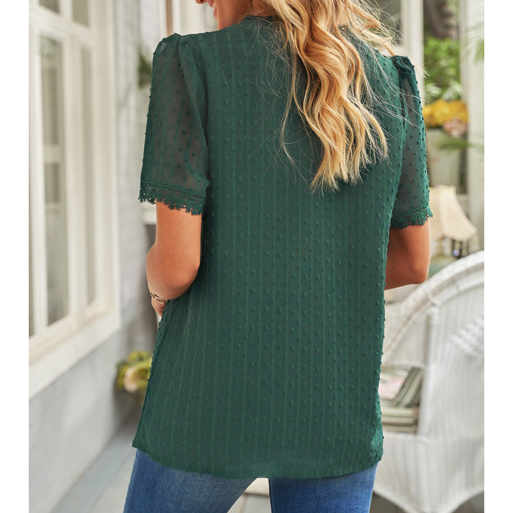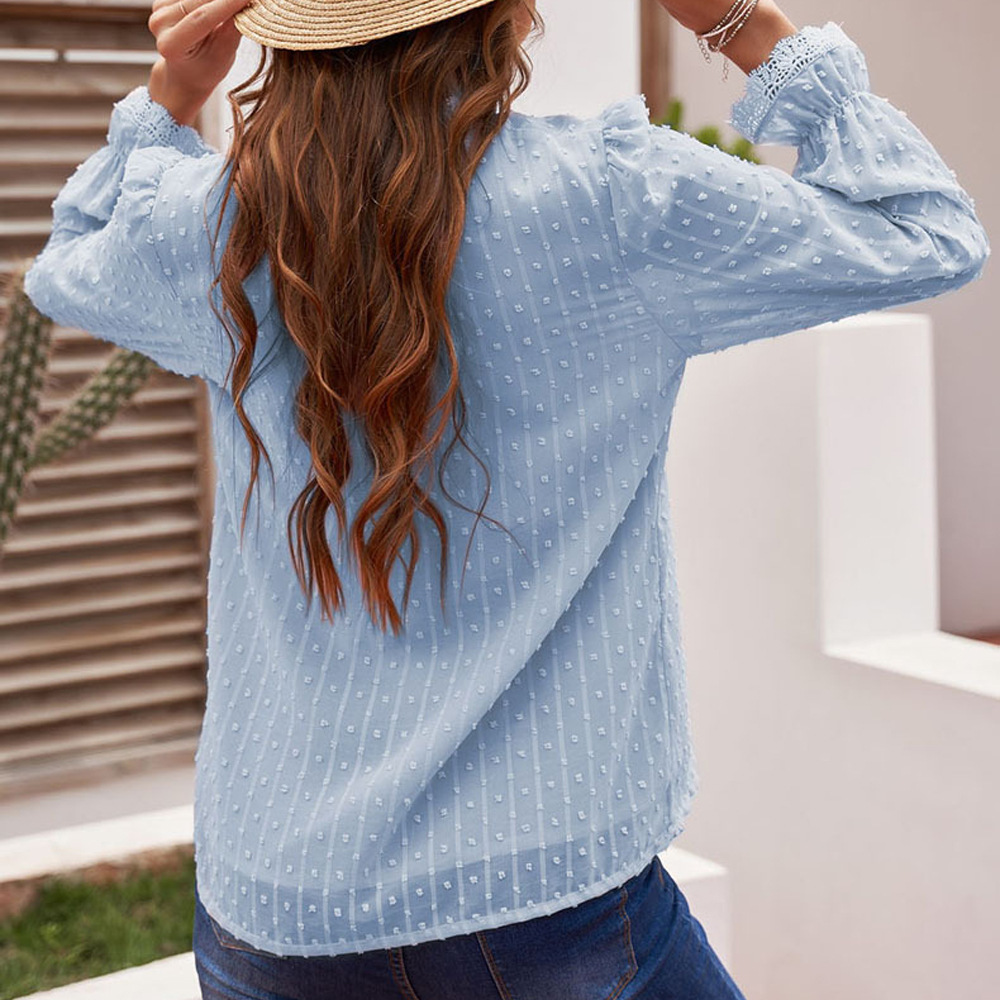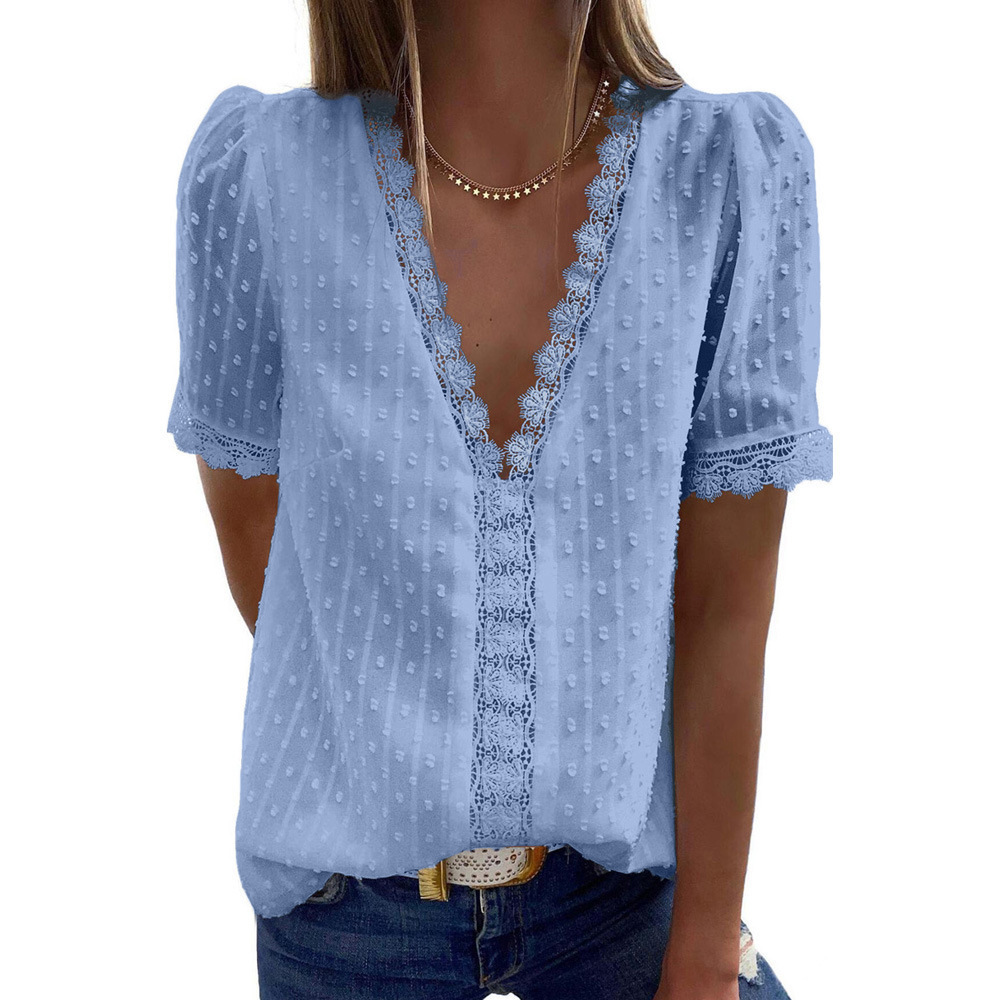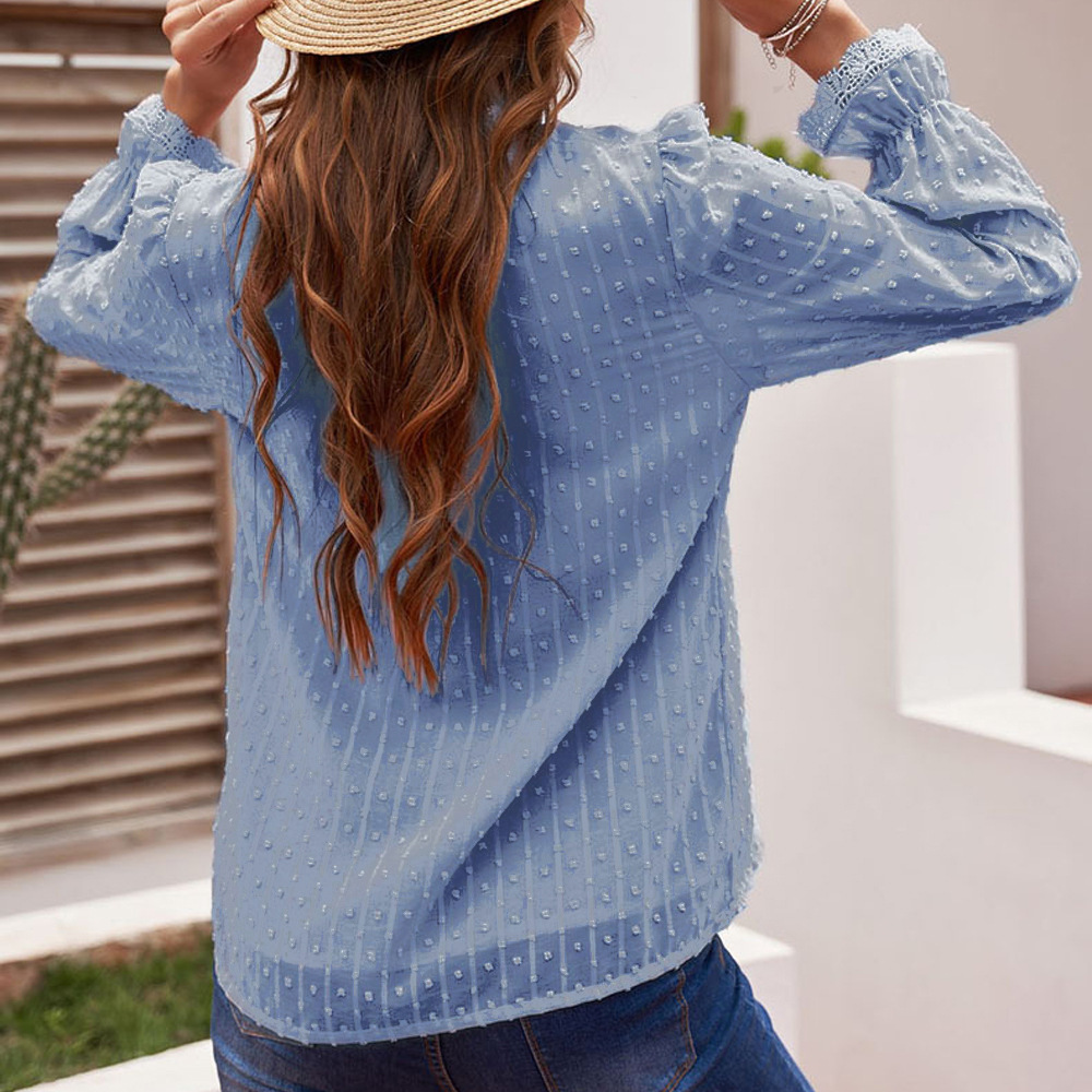2023 유럽과 미국 대외 무역 크로스 보더 여성 의류 아마존 폭발적인 단색 V-넥 자카드 자수 레이스 느슨한 쉬폰 셔츠스토어 가기