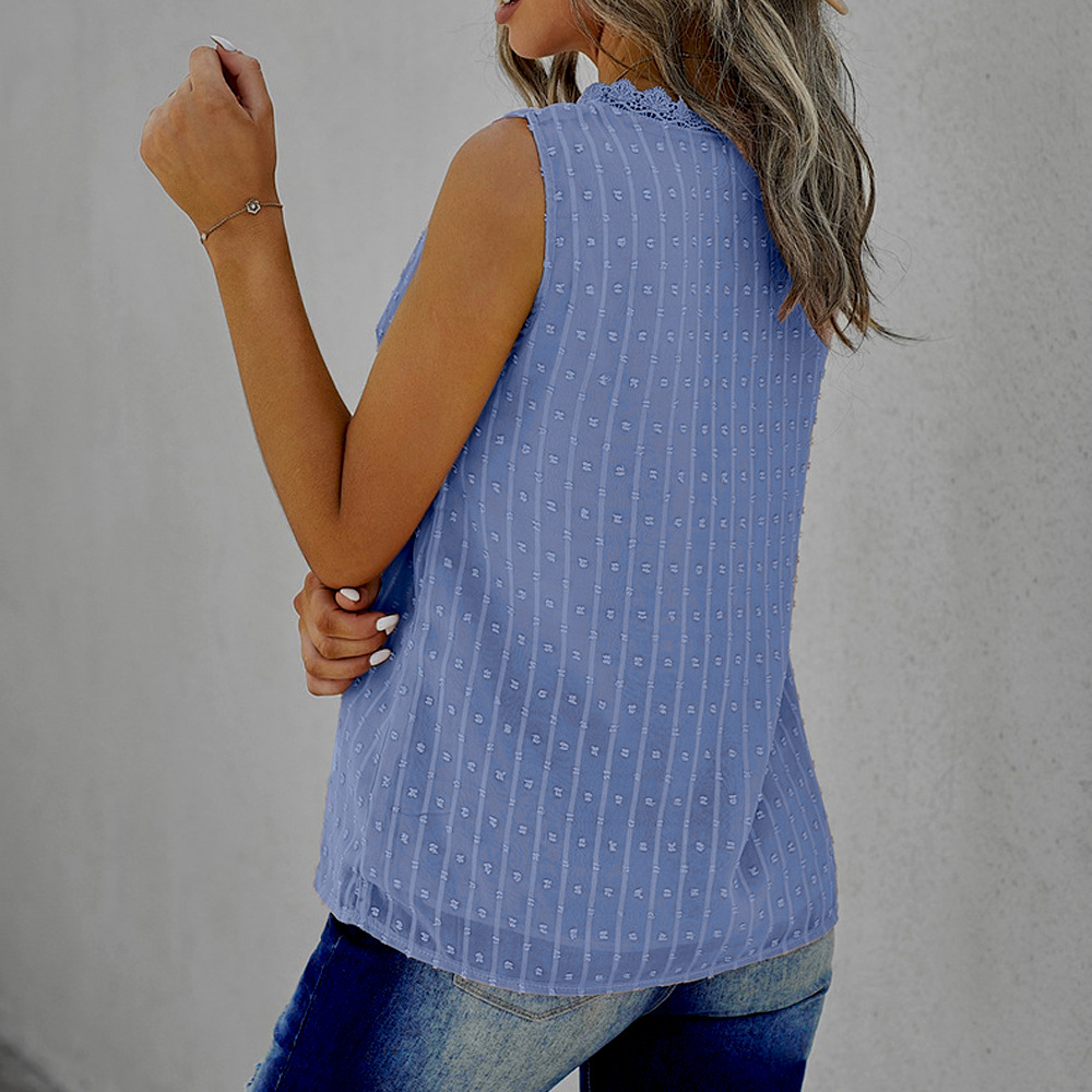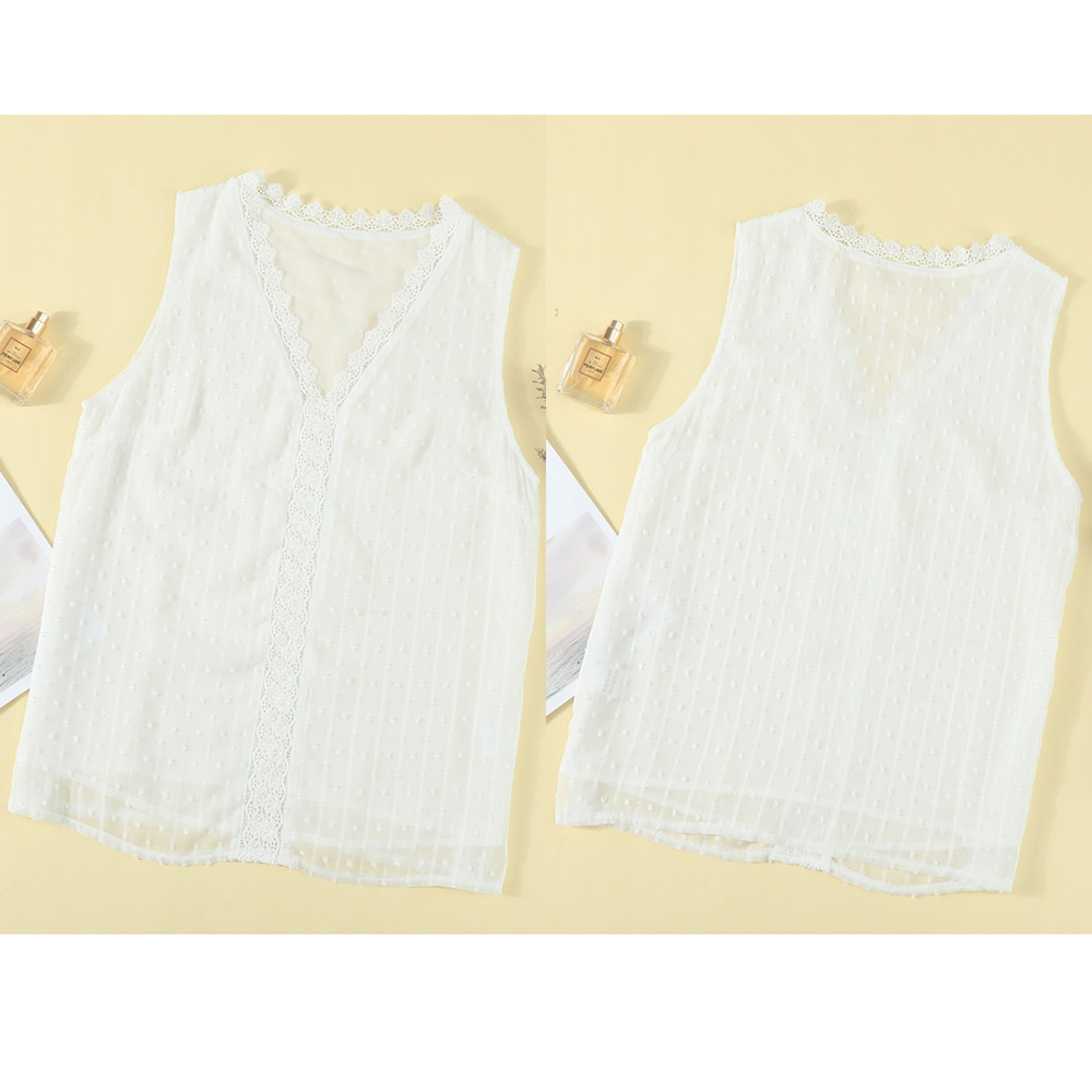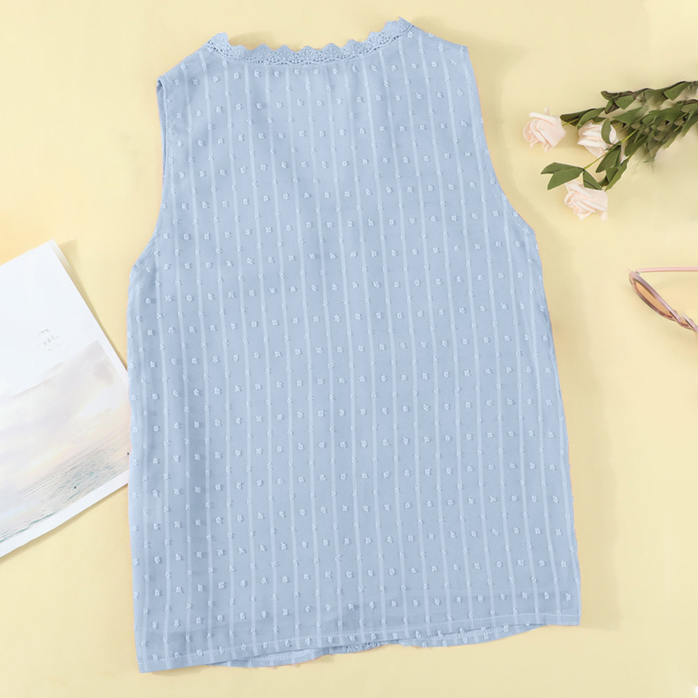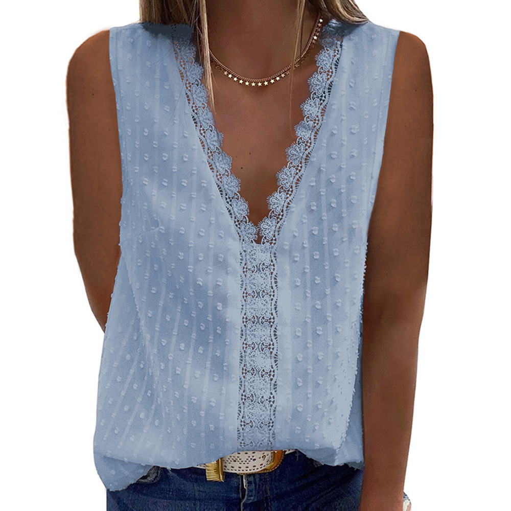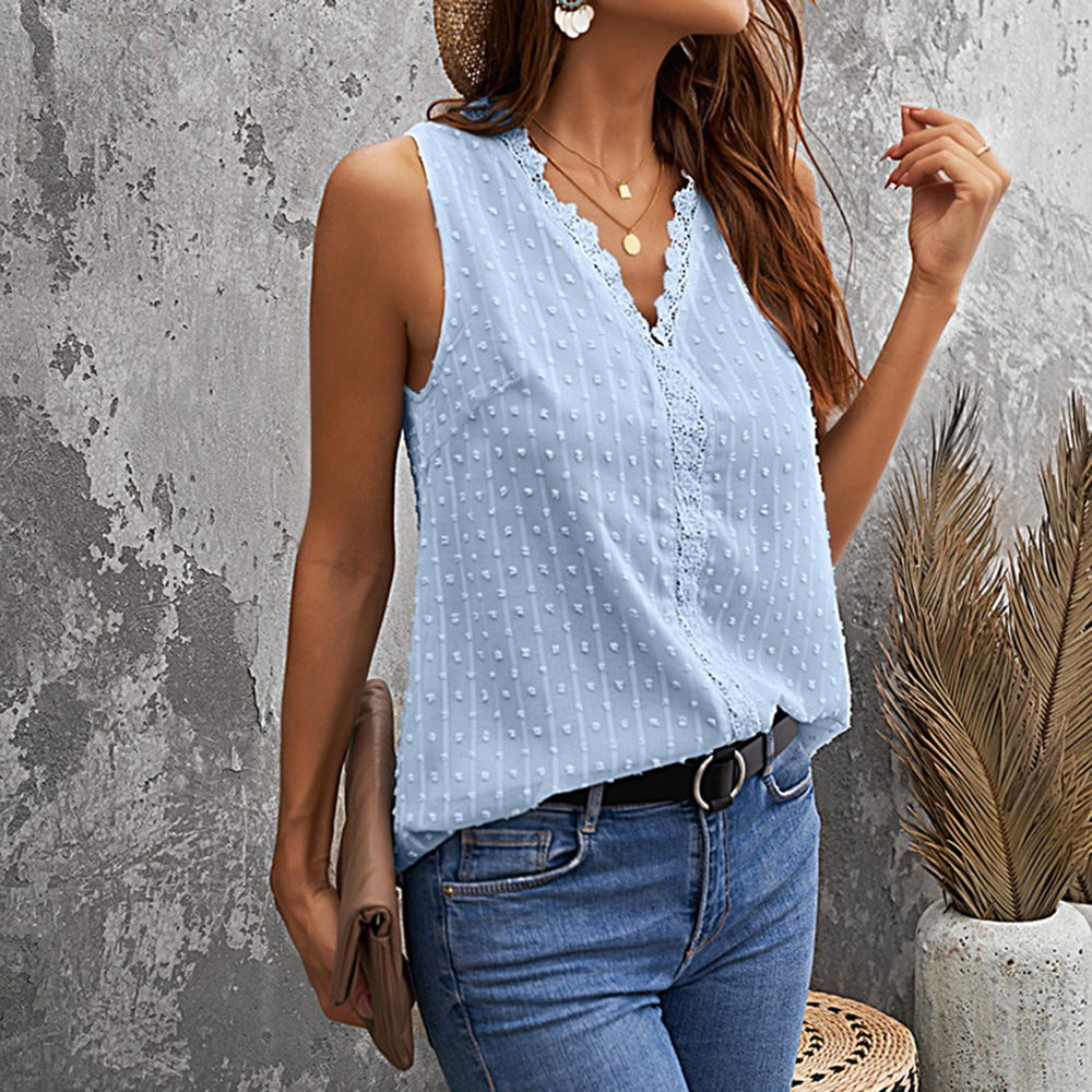 2023 유럽과 미국 대외 무역 크로스 보더 여성 의류 아마존 폭발적인 단색 V-넥 자카드 자수 레이스 느슨한 쉬폰 셔츠스토어 가기