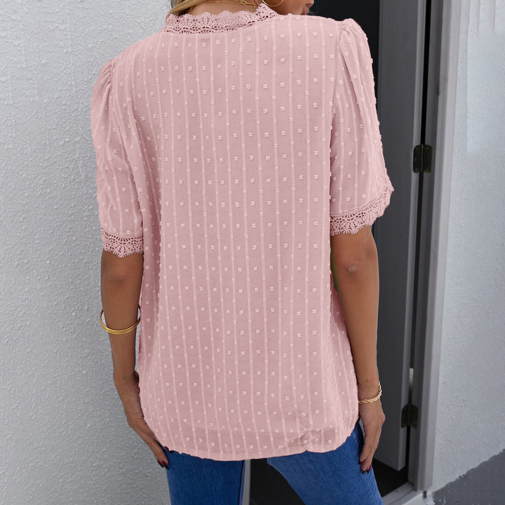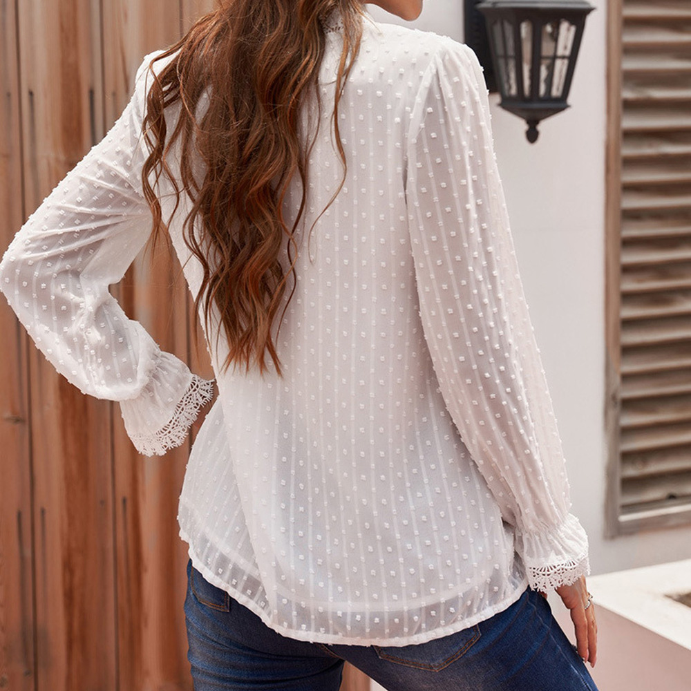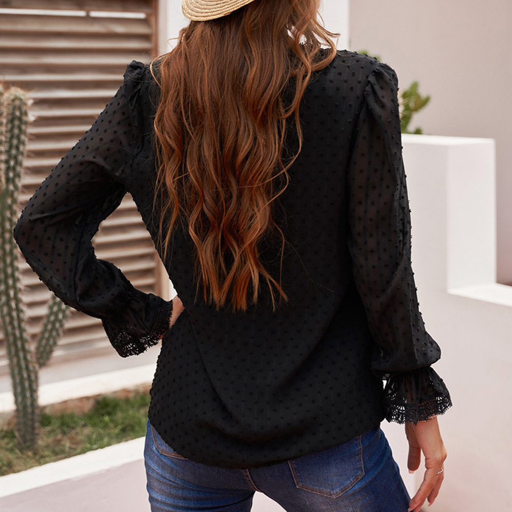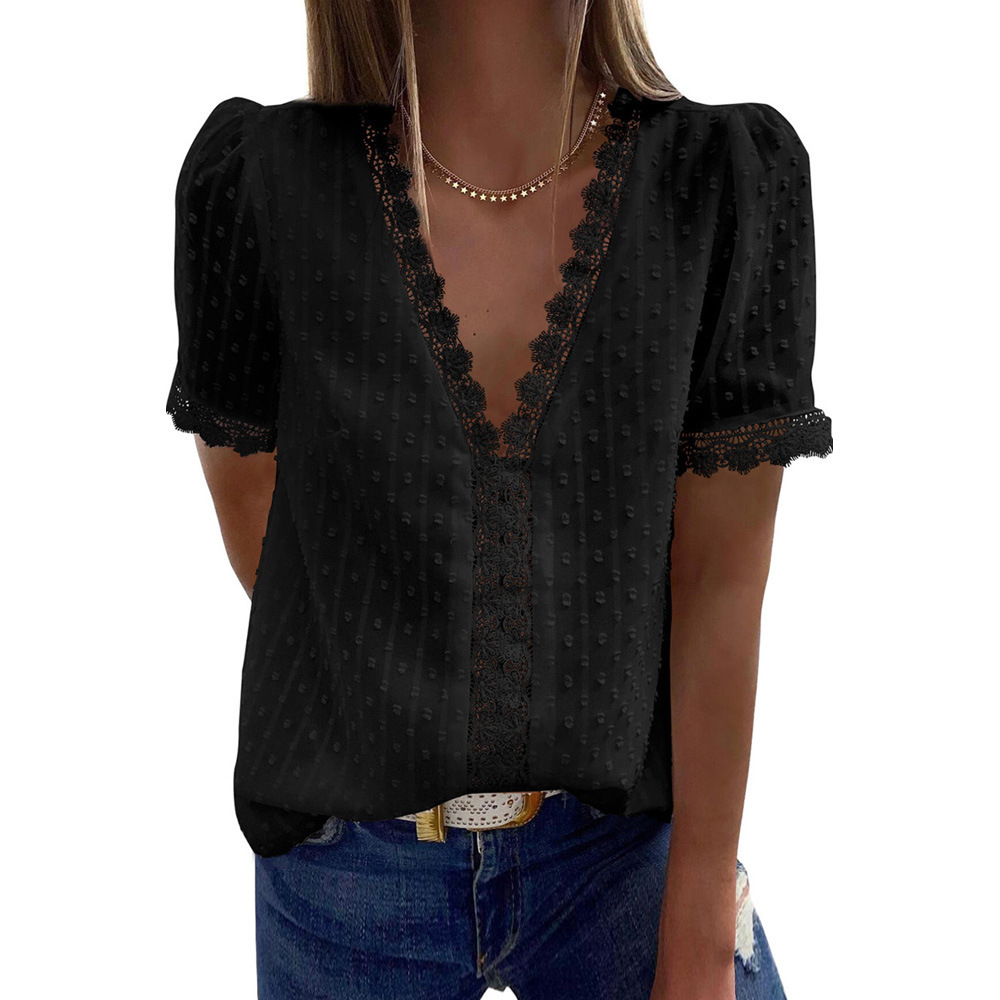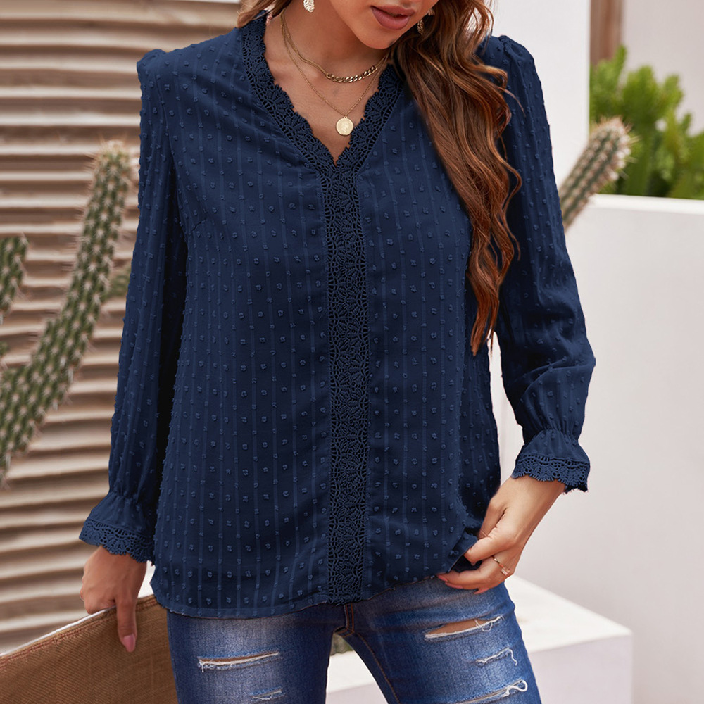 2023 유럽과 미국 대외 무역 크로스 보더 여성 의류 아마존 폭발적인 단색 V-넥 자카드 자수 레이스 느슨한 쉬폰 셔츠