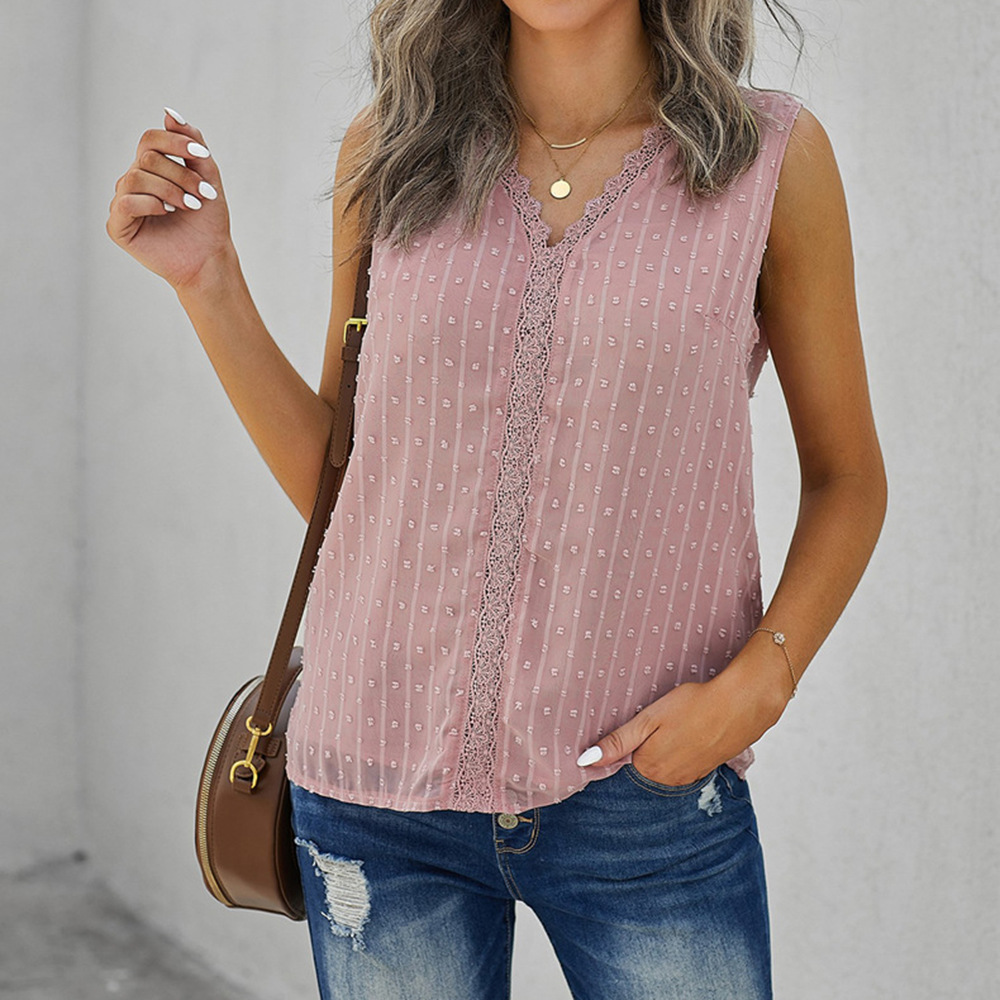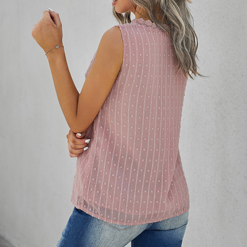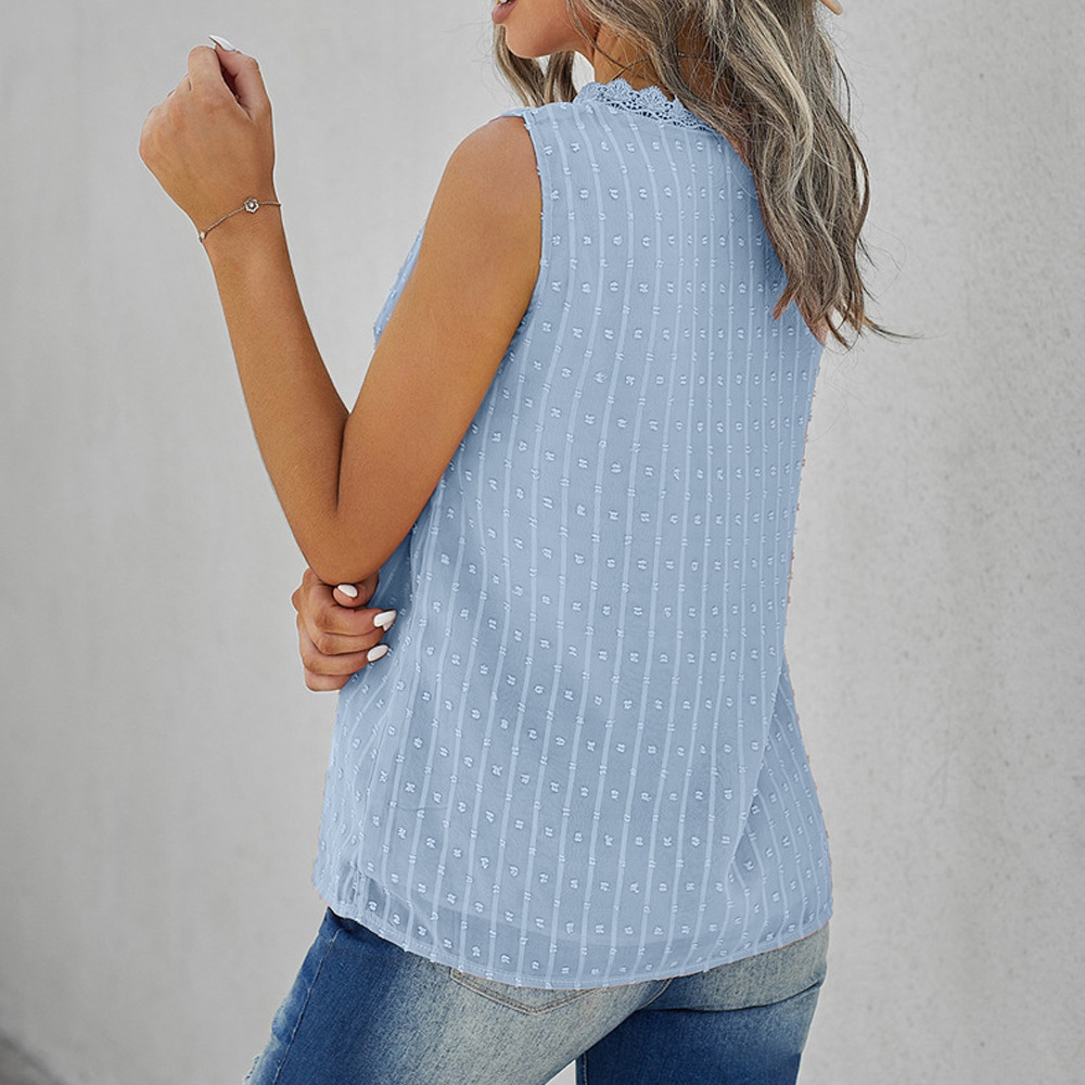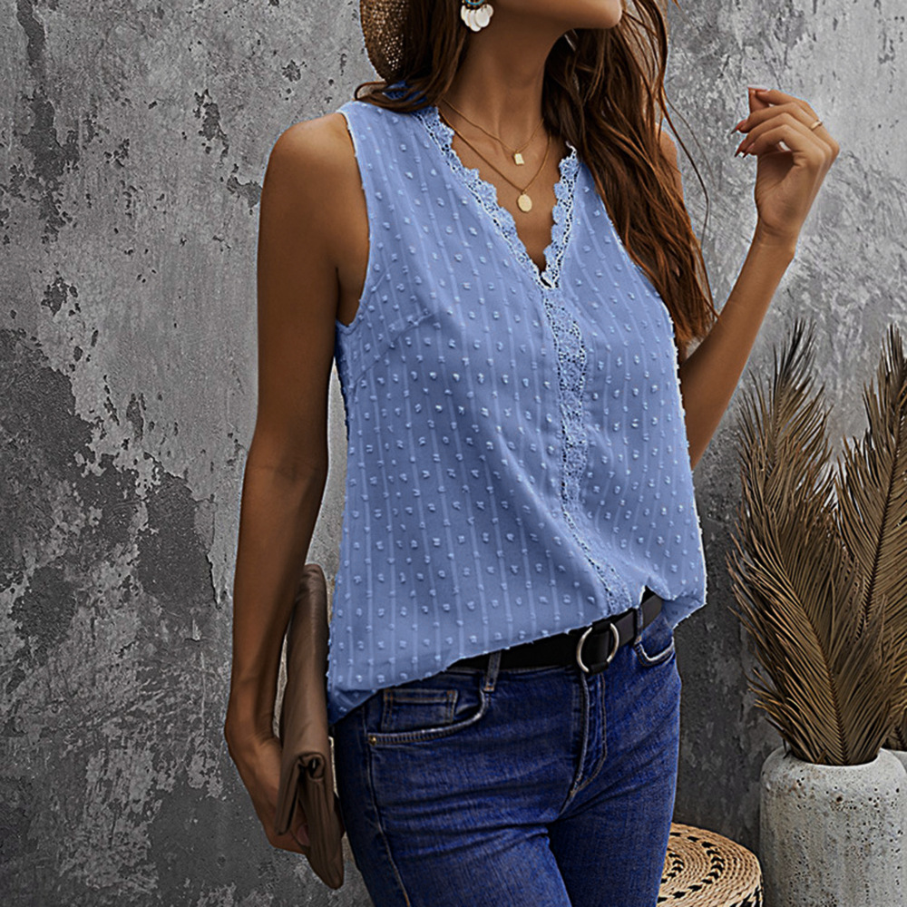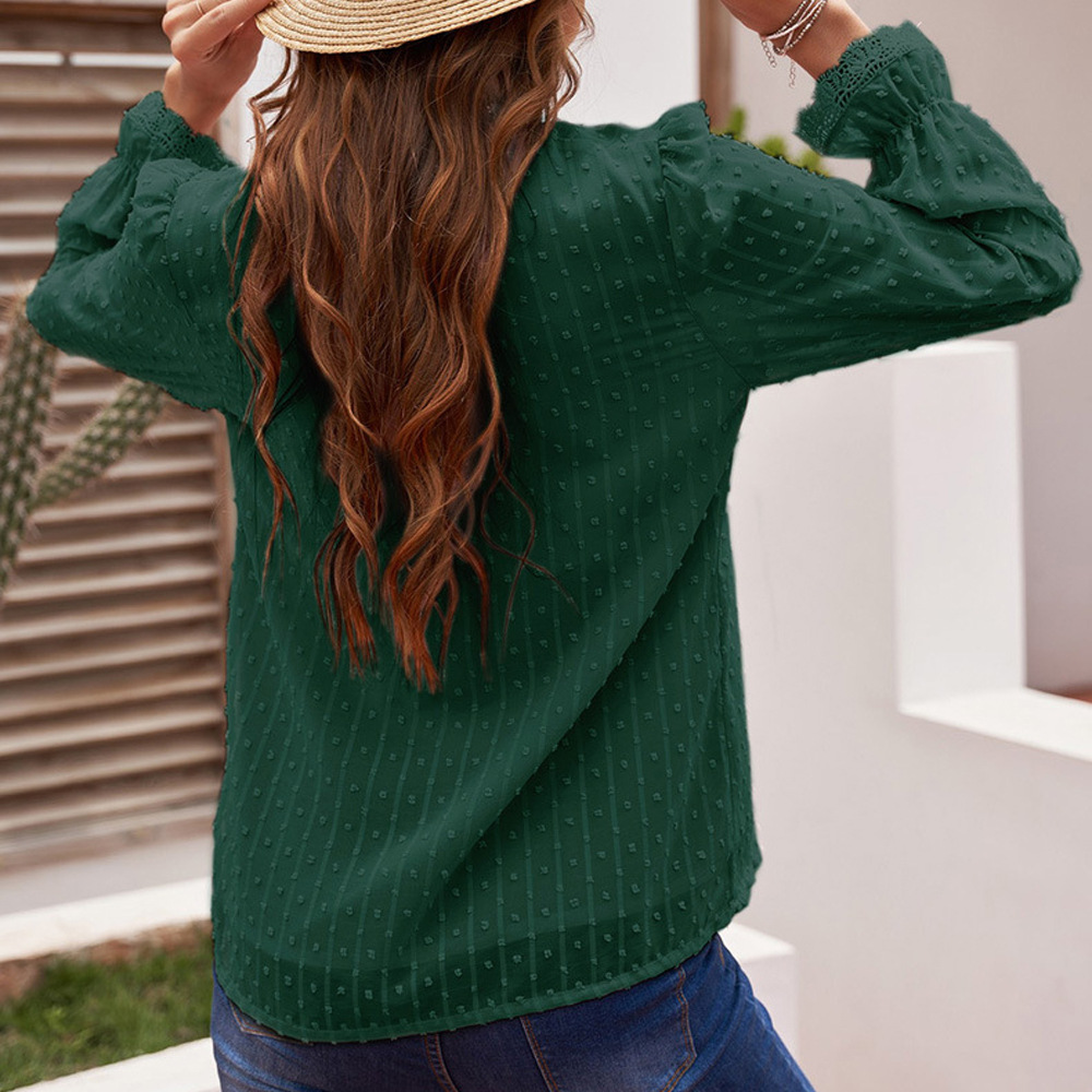 2023 유럽과 미국 대외 무역 크로스 보더 여성 의류 아마존 폭발적인 단색 V-넥 자카드 자수 레이스 느슨한 쉬폰 셔츠
