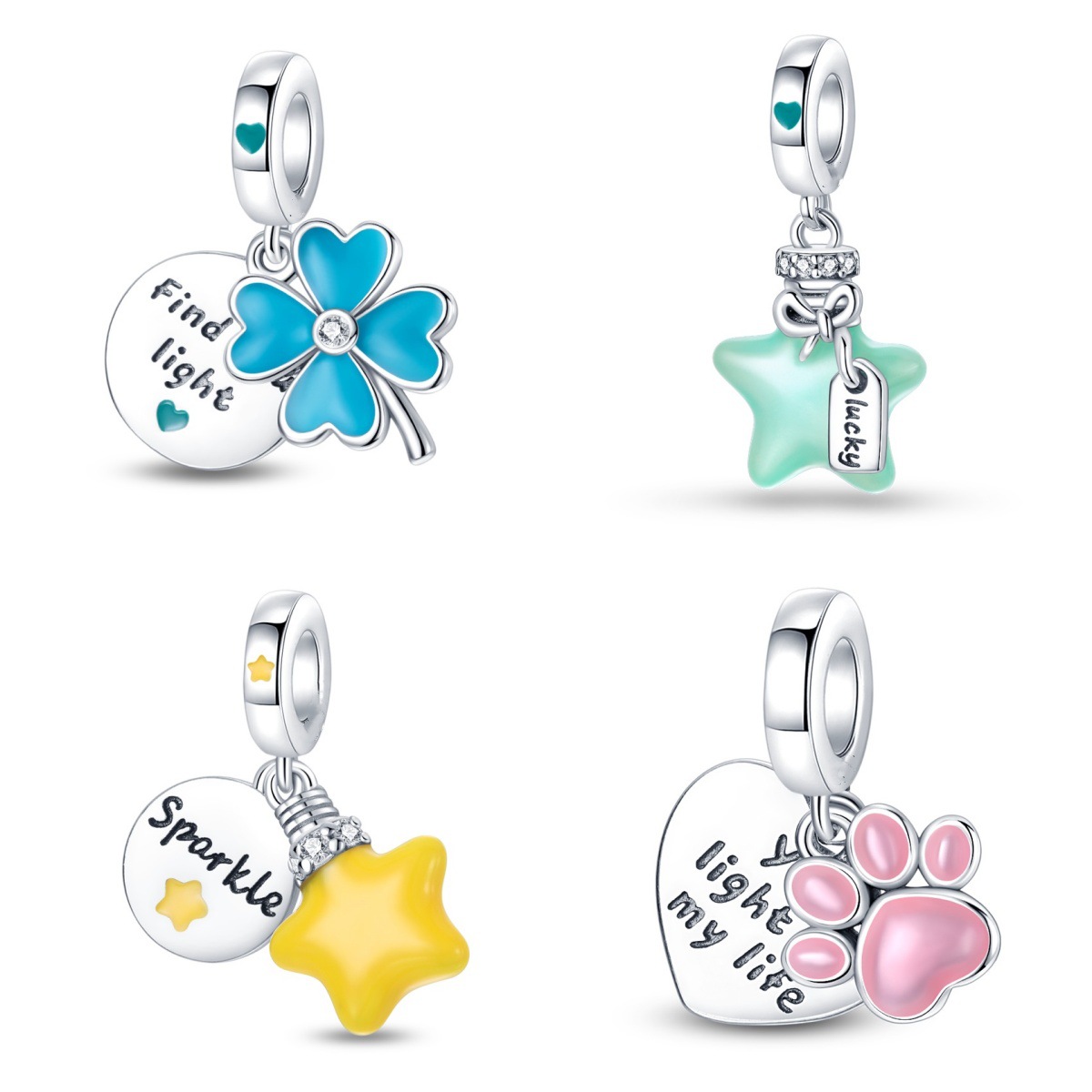 대외 무역 도매 구리 실버 도금 매직 컬러 빛나는 네 잎 클로버 스타 펜던트 Panjia 팔찌 목걸이 비즈 아마존 핫 세일스토어 가기
