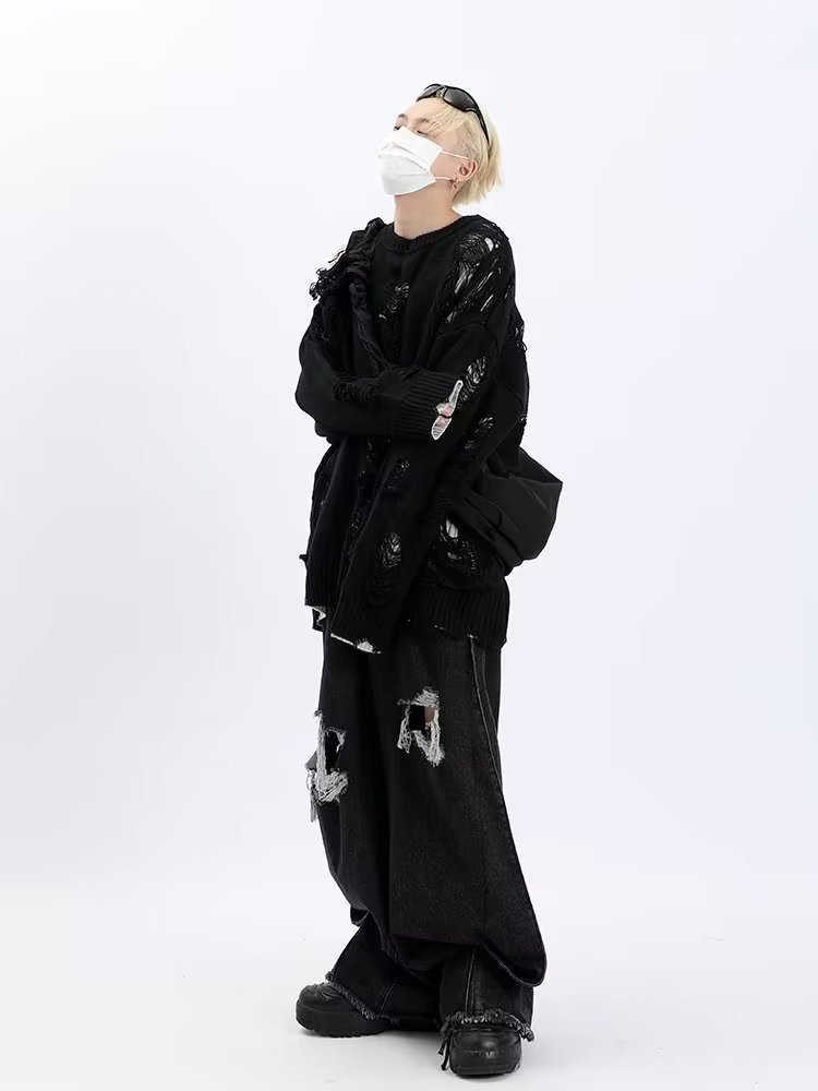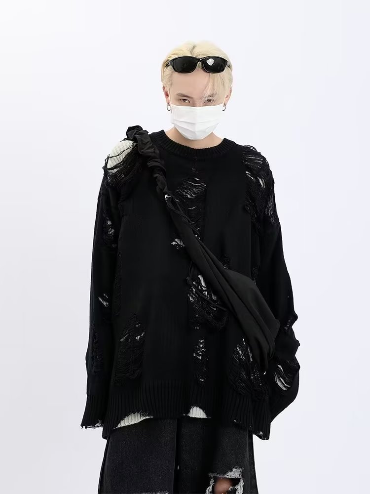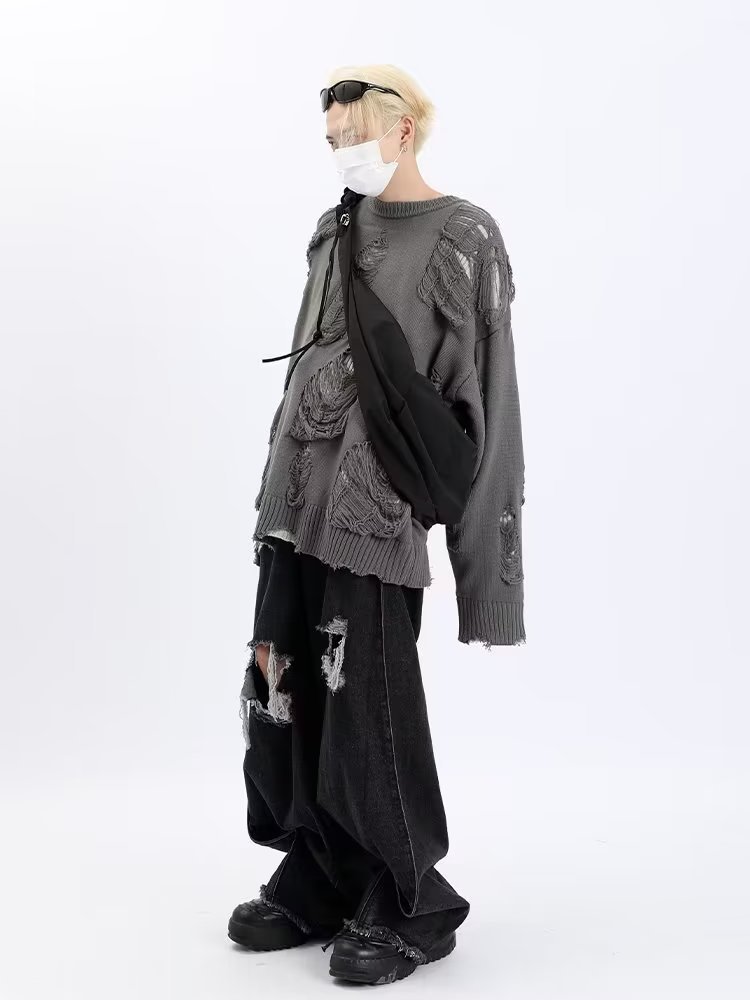 가짜 투피스 스웨터 남성용 겨울 두꺼운 구멍 중공 패션 브랜드 양면 스웨터 게으른 스타일 코트 고급 감각스토어 가기