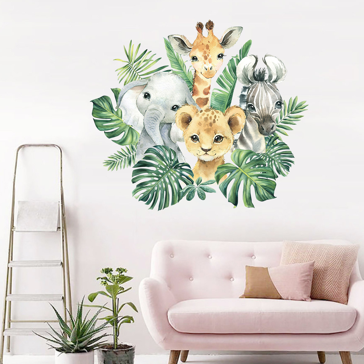녹색 식물 아프리카 작은 동물 자체 접착 벽 스티커 만화 귀여운 코끼리 얼룩말 기린 장식 스티커 BR64582