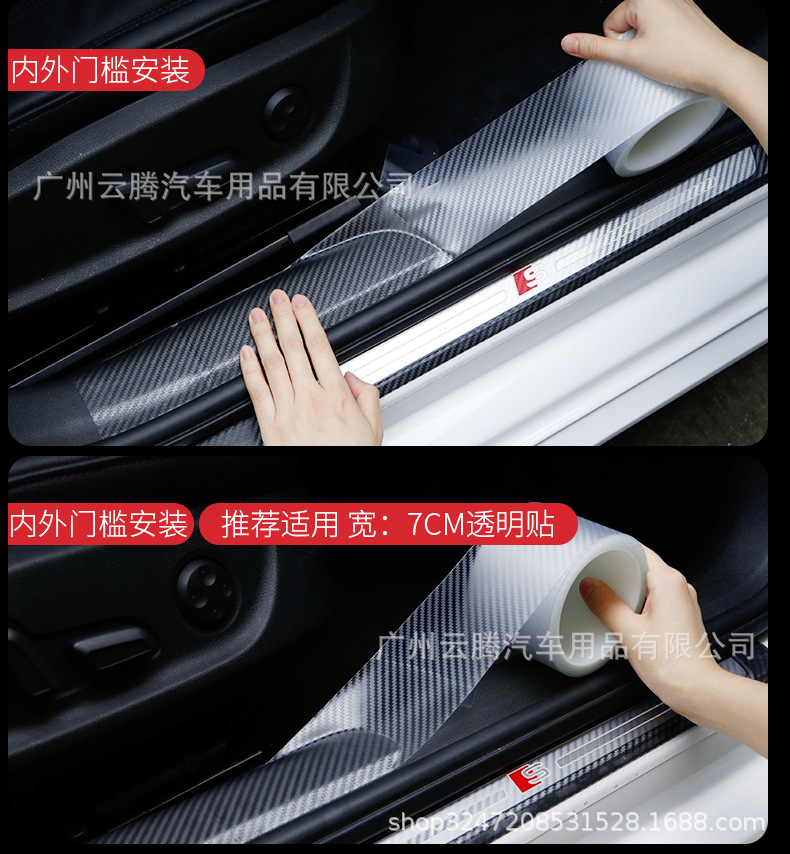 자동차 임계 값 스트립 탄소 섬유 범퍼 충돌 방지 스트립 스테핑 스티커 탄소 섬유 곡물 유니버설 바디 필름 스티커 장식 스트립