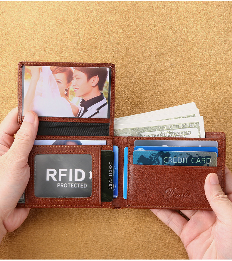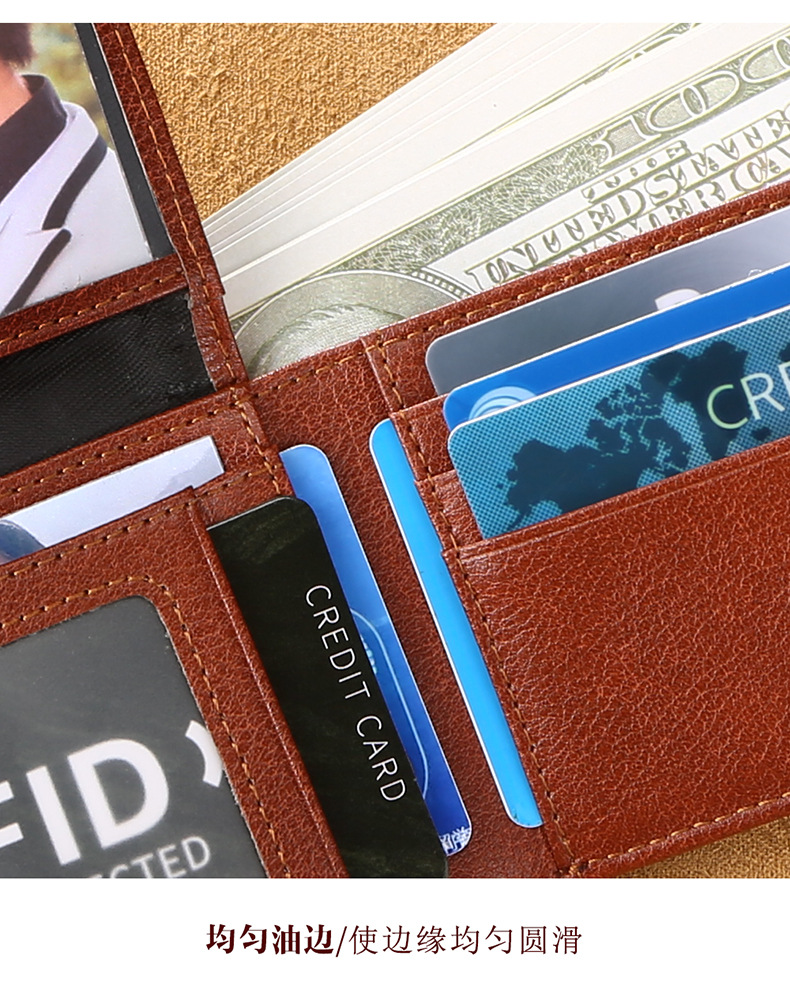 아마존 폭발 1 층 소가죽 지갑 얇은 색 RFID 도난 방지 신용 카드 운전 면허증 동전 지갑 수평