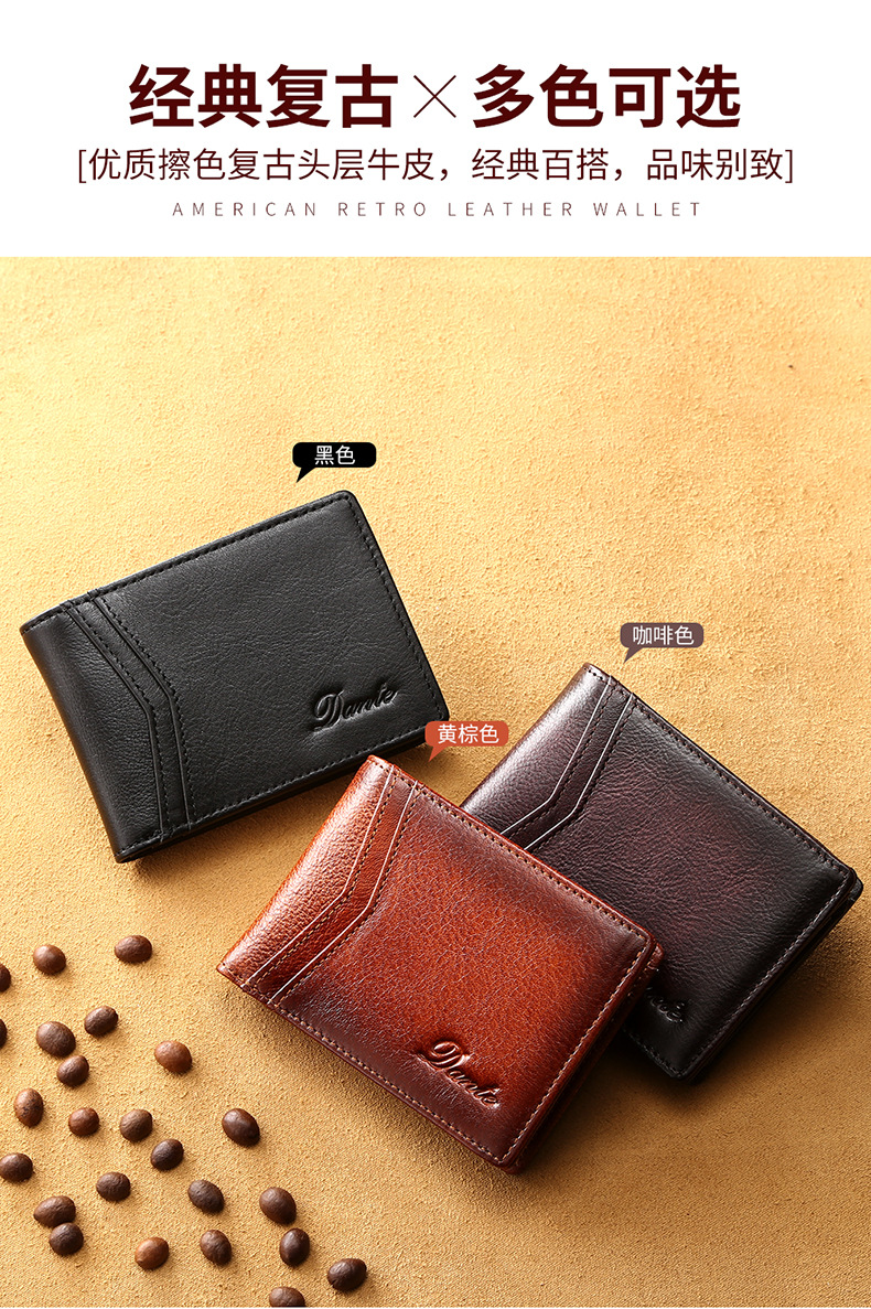아마존 폭발 1 층 소가죽 지갑 얇은 색 RFID 도난 방지 신용 카드 운전 면허증 동전 지갑 수평스토어 가기