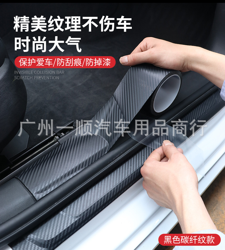 자동차 K3D 탄소 섬유 블랙 문턱 스트립 범퍼 안티 스테핑 스트립 탄소 섬유 패턴 유니버설 자동차 필름 장식 스티커