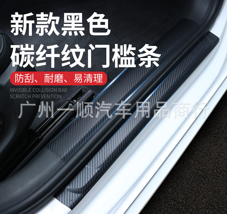 자동차 K3D 탄소 섬유 블랙 문턱 스트립 범퍼 안티 스테핑 스트립 탄소 섬유 패턴 유니버설 자동차 필름 장식 스티커스토어 가기