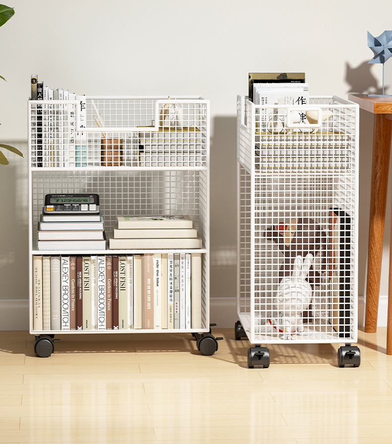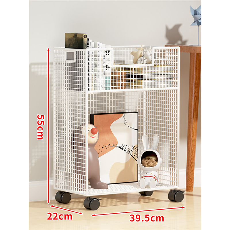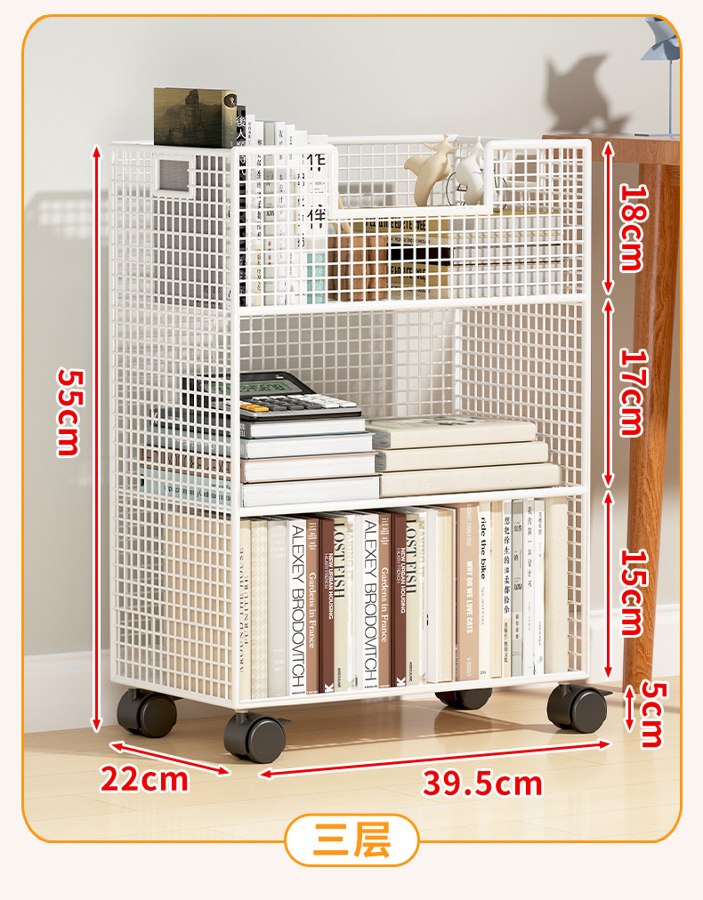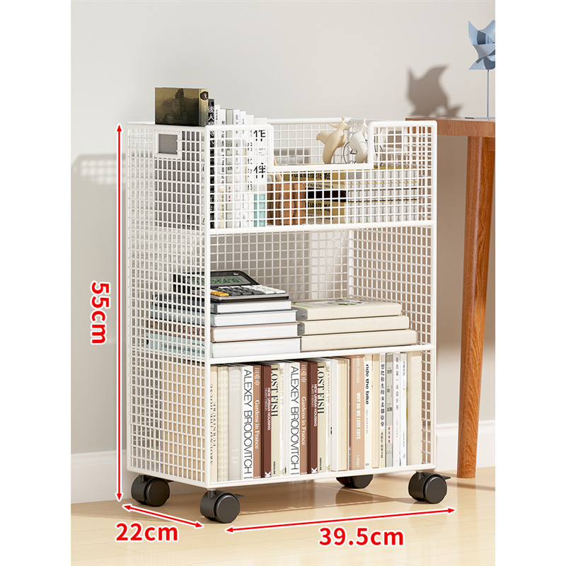 바퀴 달린 트롤리 보관 캐비닛이있는 책장 바닥 보관 랙 모바일 책장 간단한 가정용 테이블 측면 통합 책꽂이스토어 가기