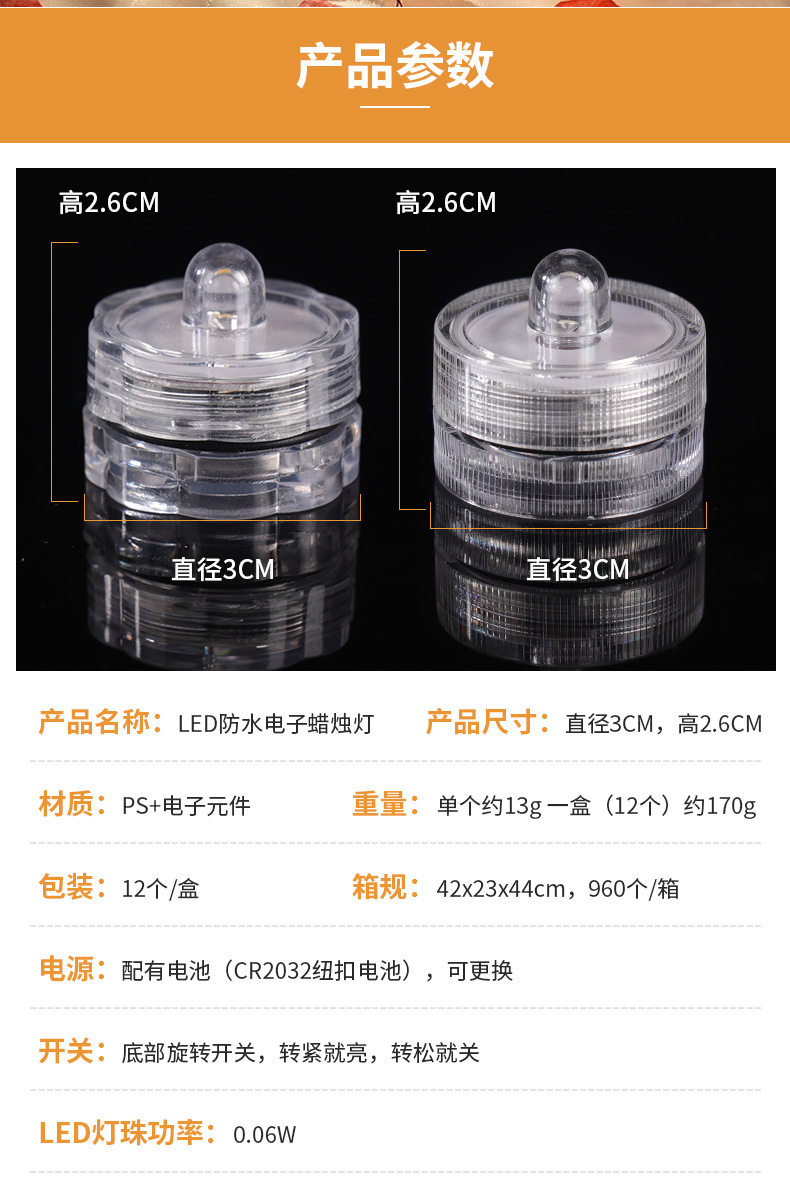 라운드 led 방수 촛불 램프 다채로운 침수 장식 램프 어항 램프 수족관 다이빙 램프 빌딩 블록 상자 소품