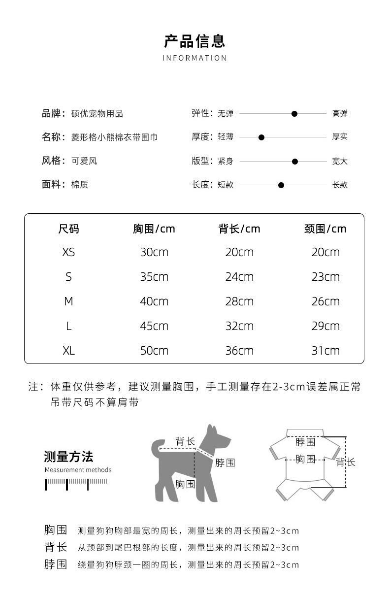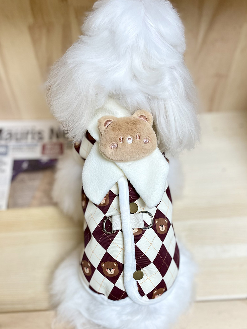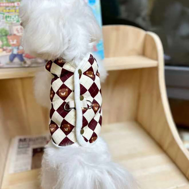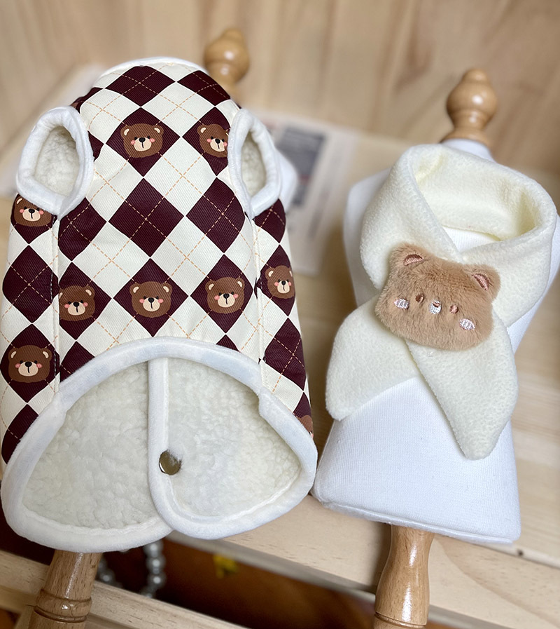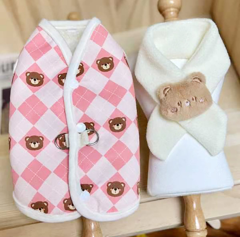 원래 가을과 겨울 애완 동물 개 고양이 옷 다이아몬드 패드 곰 면 옷 스카프 애완 동물 조끼 기모 견인 말스토어 가기