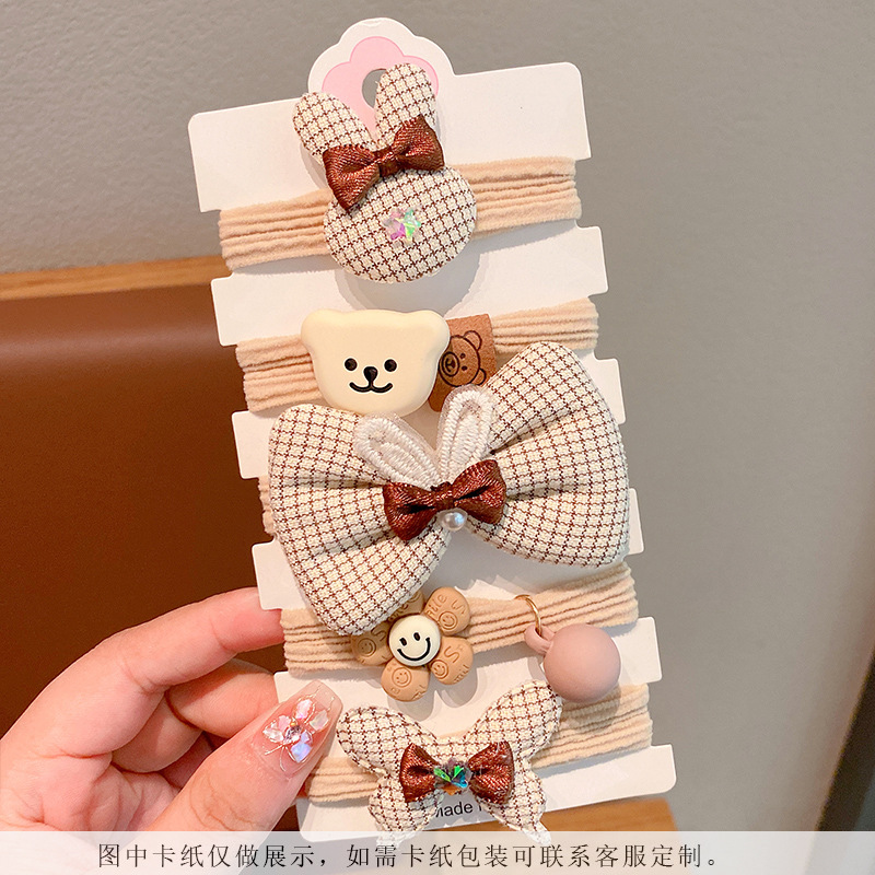 어린이 고무 밴드 귀여운 라이트 베이지 머리 밧줄 여자 머리 밧줄 머리 수건 반지 여자 포니 테일 머리 밧줄을 다치게하지 않습니다스토어 가기