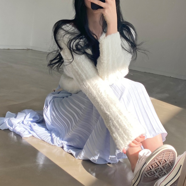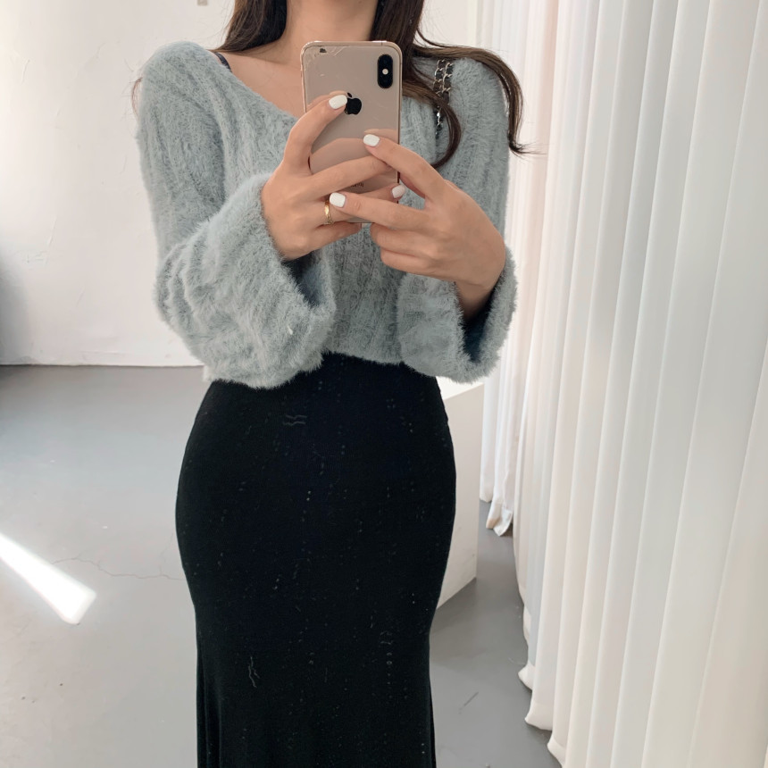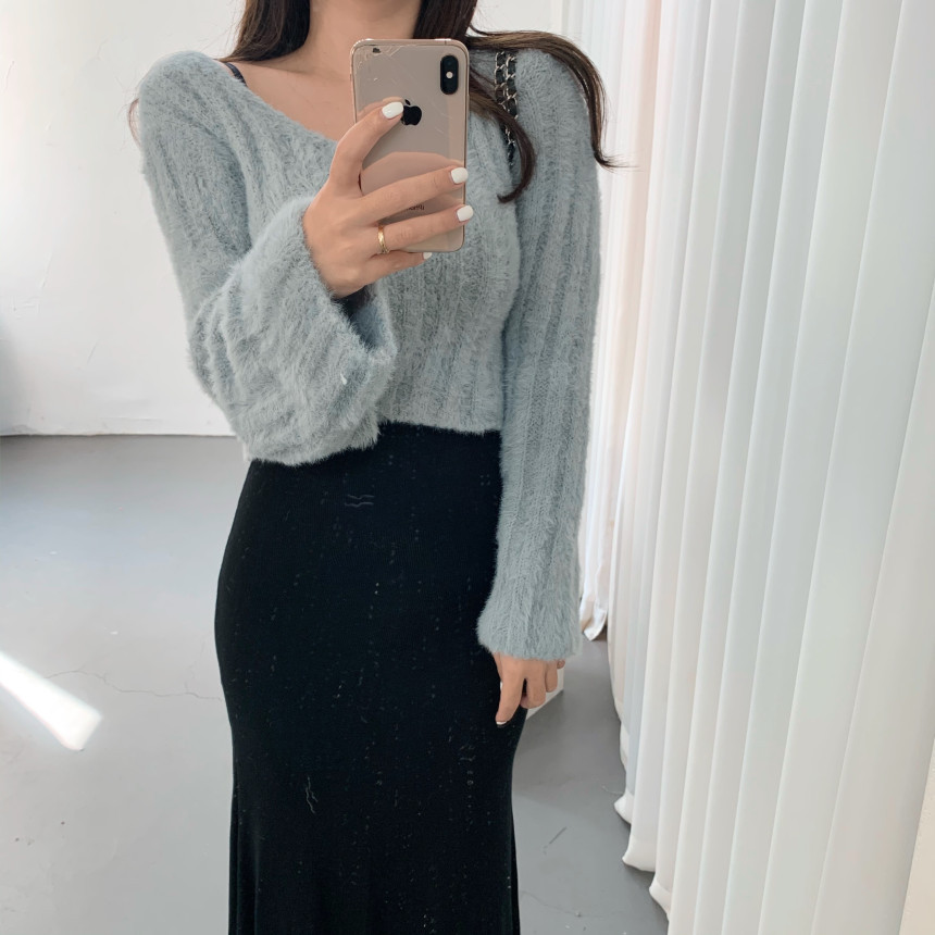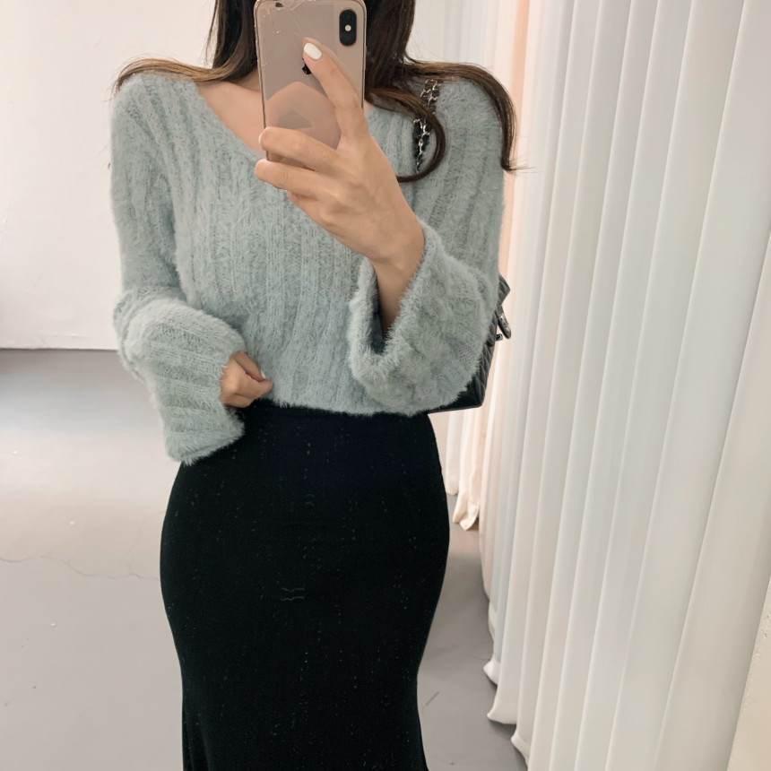 여성을위한 부드러운 스타일 모헤어 스웨터 풀오버 2025 가을, 겨울 여성을위한 새로운 느슨한 짧은 v 넥 다목적 스웨터 탑스토어 가기