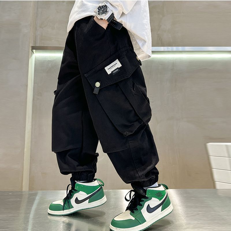아동복 소년 가을 겨울 바지 2023 새로운 중대형 아동 작업복 소년의 느슨하고 다재다능한 멋진 바지스토어 가기