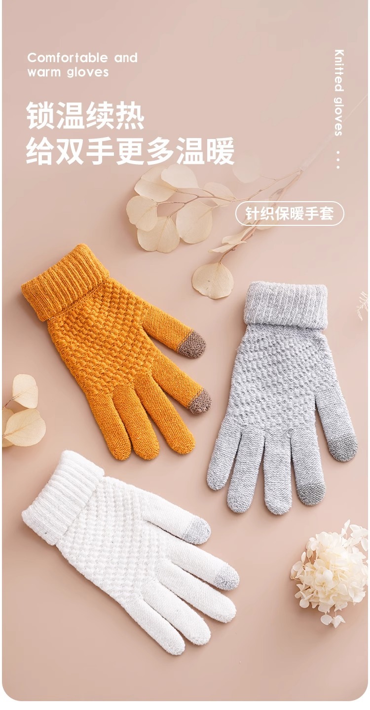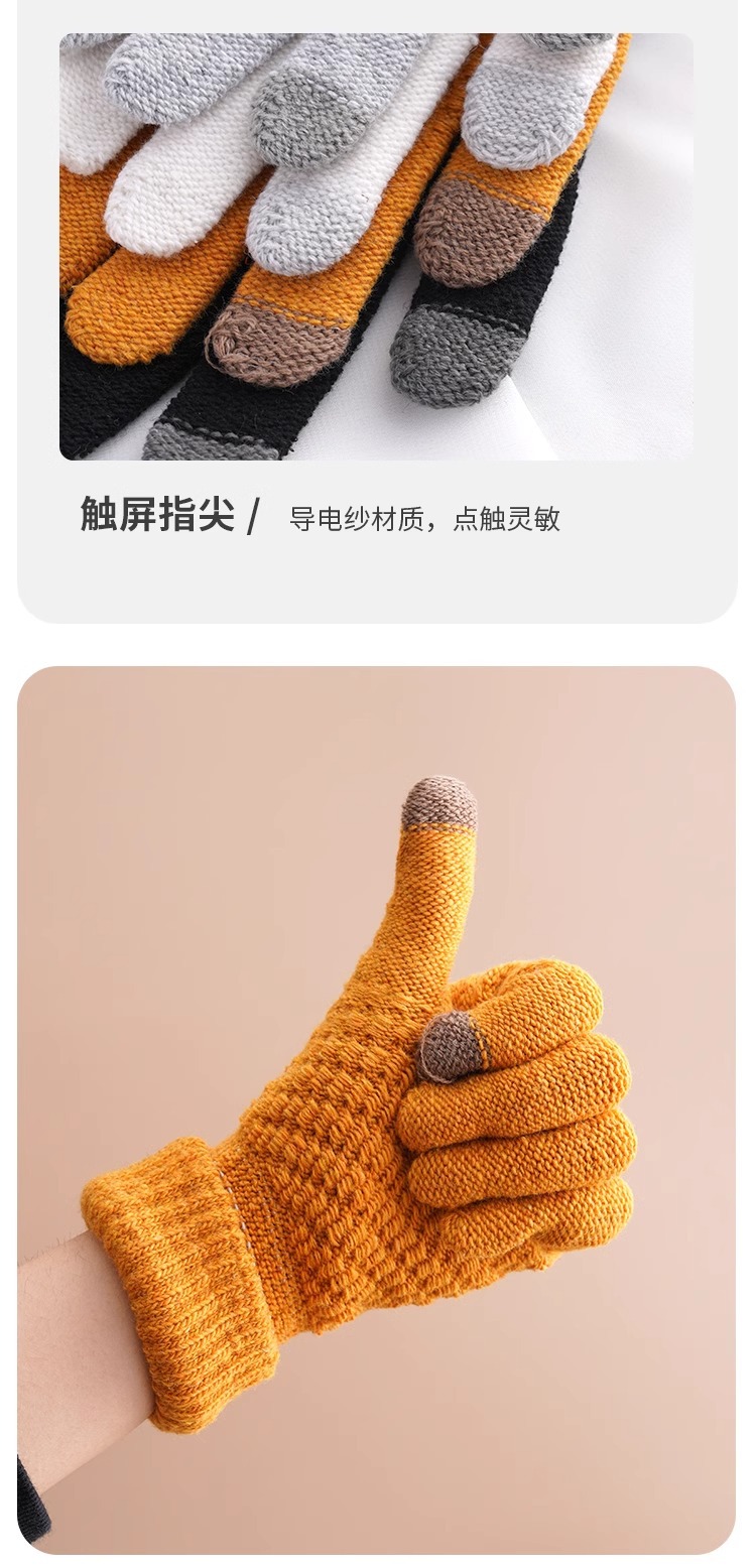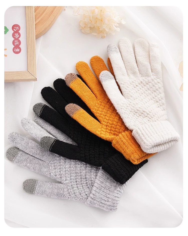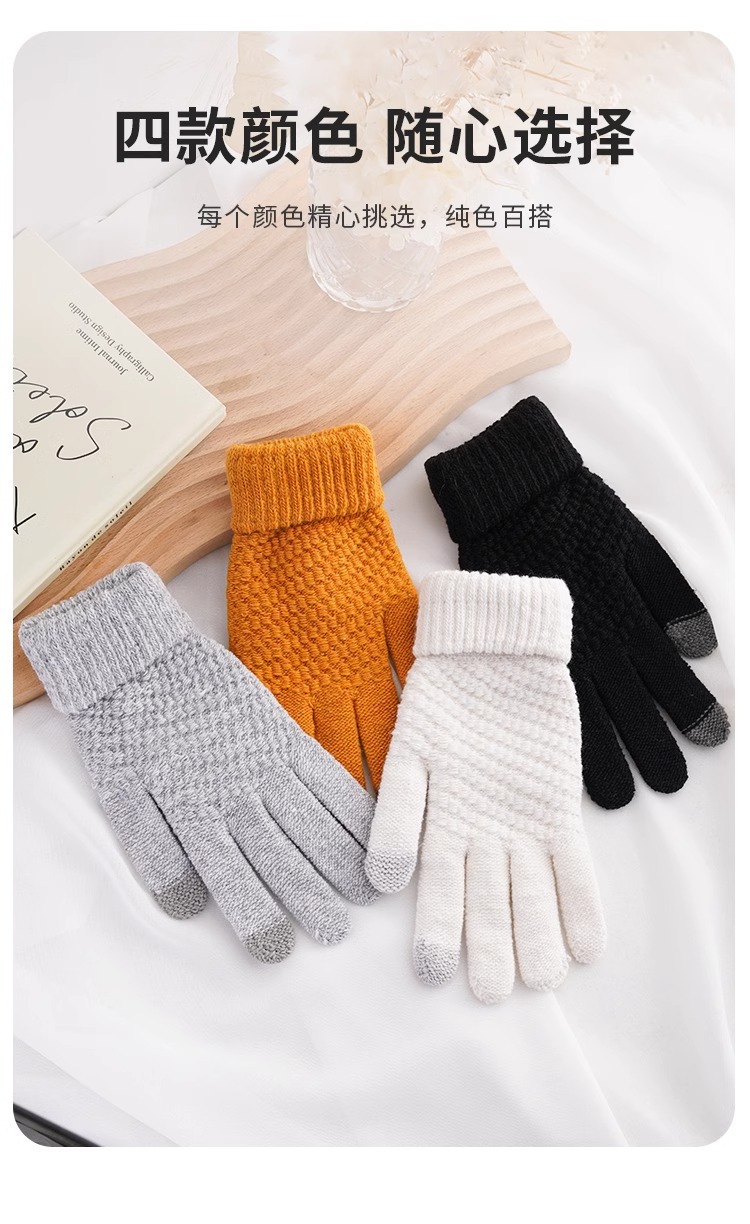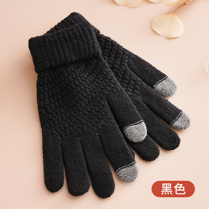단색 니트 터치 스크린 장갑 가을과 겨울 따뜻한 다섯 손가락 장갑 야외 여행 사이클링 방한 손가락 성인 장갑