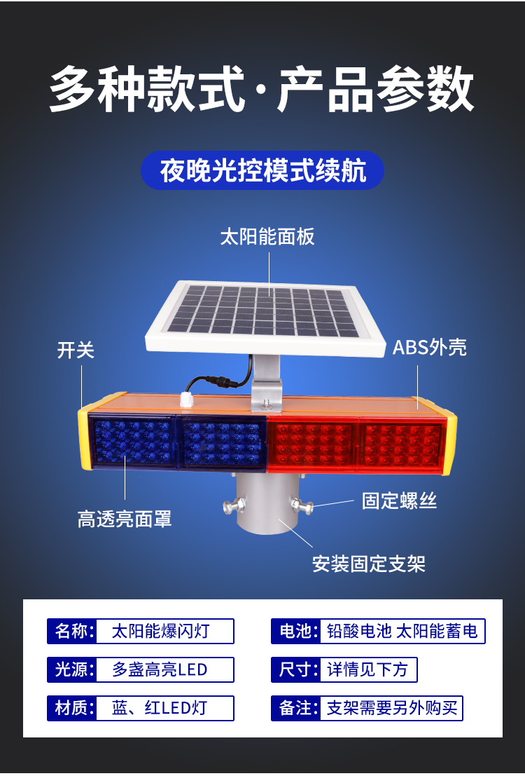 태양 경고 플래시 라이트 양면 도로 블록 플래시 라이트 LED 고속도로 스트로브 라이트 건설 신호등 강한 빛