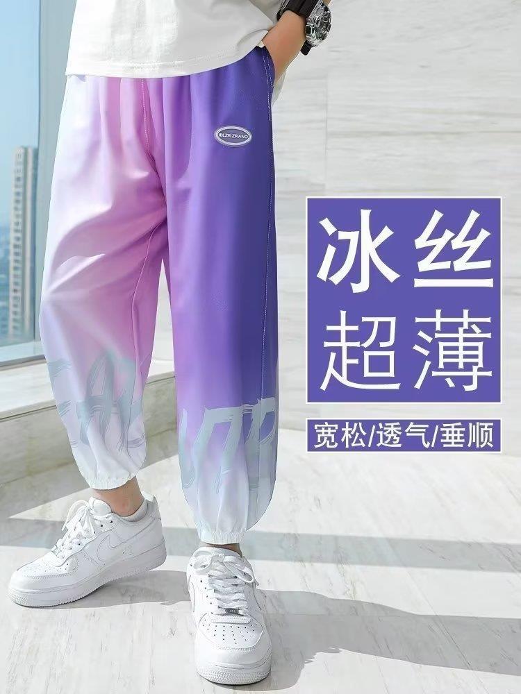여자 바지 2023 새로운 어린이 얼음 실크 모기 방지 바지 여름 얇은 중대형 어린이 바지 여자 스포츠 여름 옷