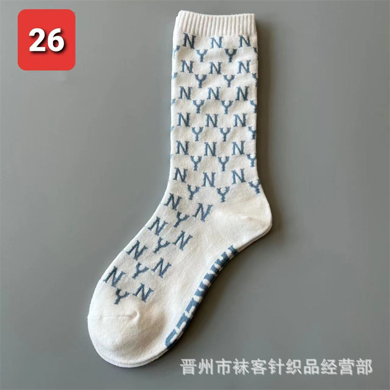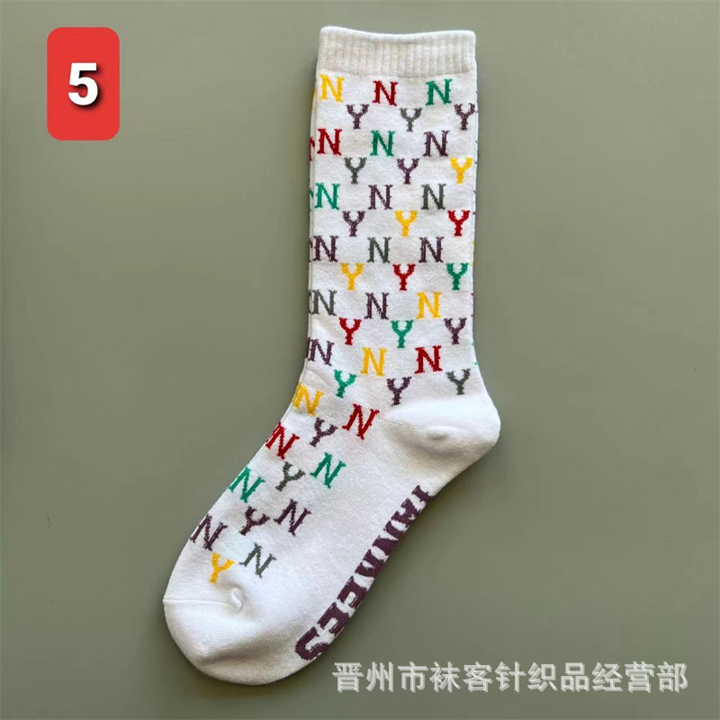 NY 스포츠 양말 높은 유행 양말 한국 스타일 올드 플라워 LA 양말 대외 무역 전체 표준 양말 사계절 면 양말 편지