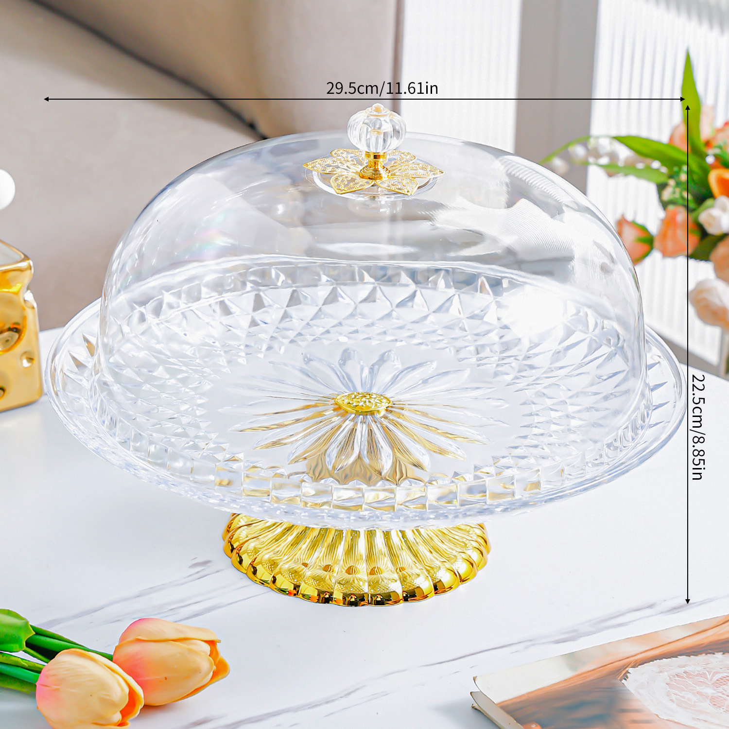 • 뚜껑 랜턴 탑이 있는 키가 큰 투명 케이크 팬-S