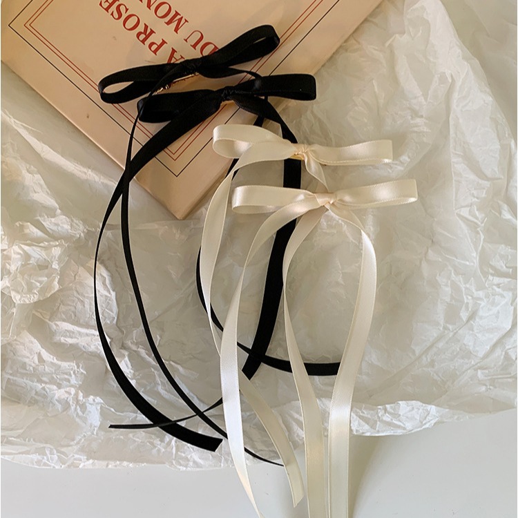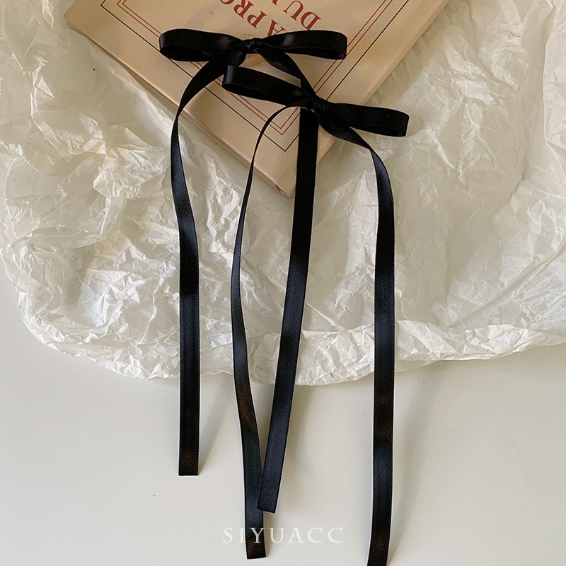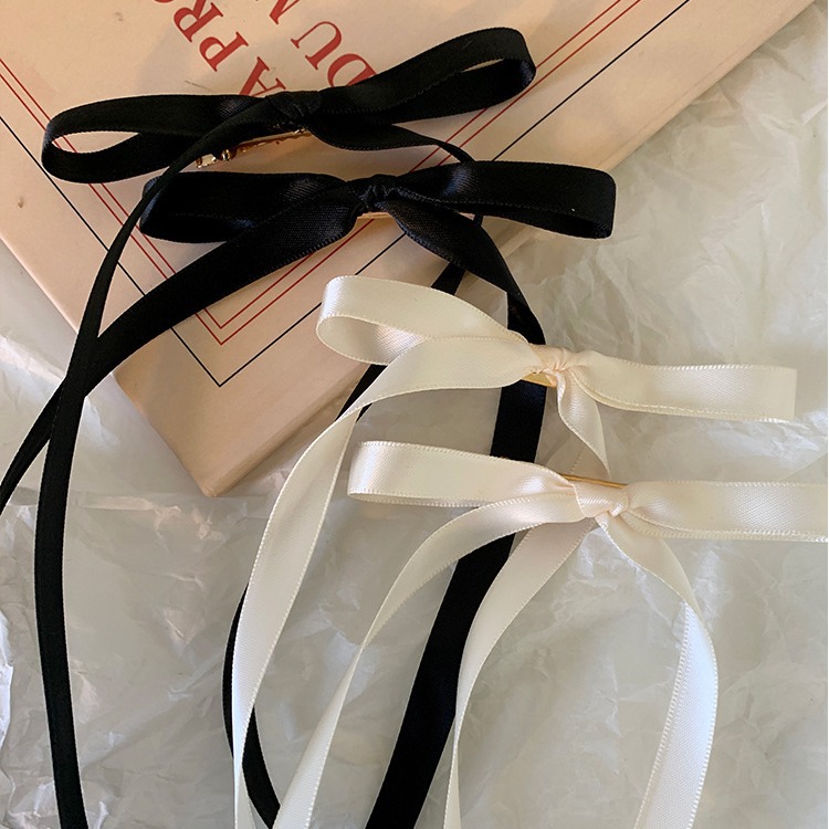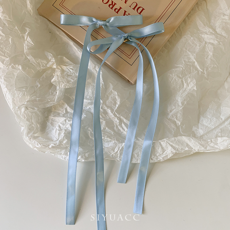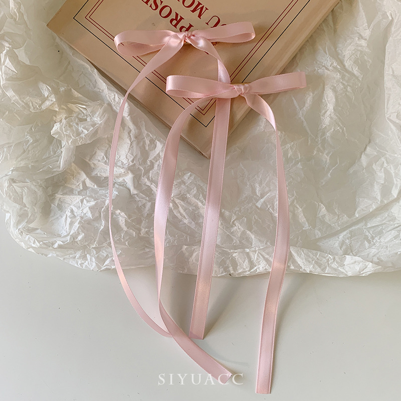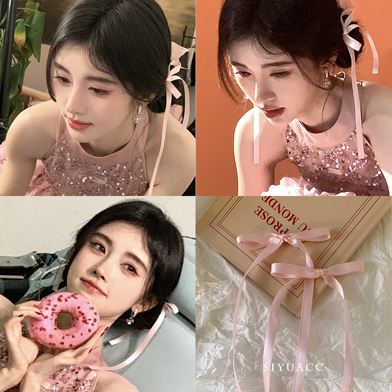 달콤한 리본 활 머리핀 긴 리본 머리핀 사이드 클립 프렌치 리본 넥타이 헤어 더블 포니 테일 소녀 헤어 액세서리스토어 가기