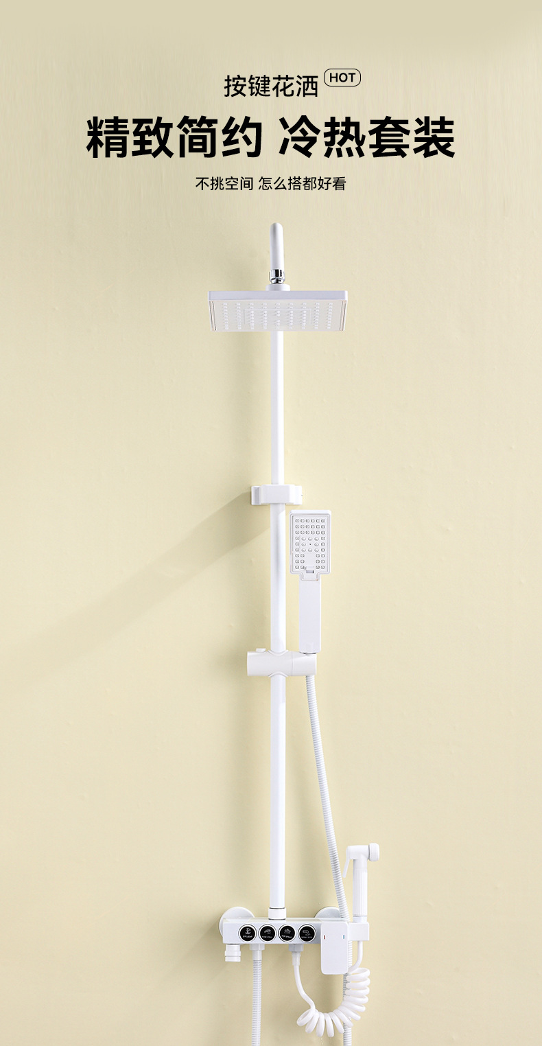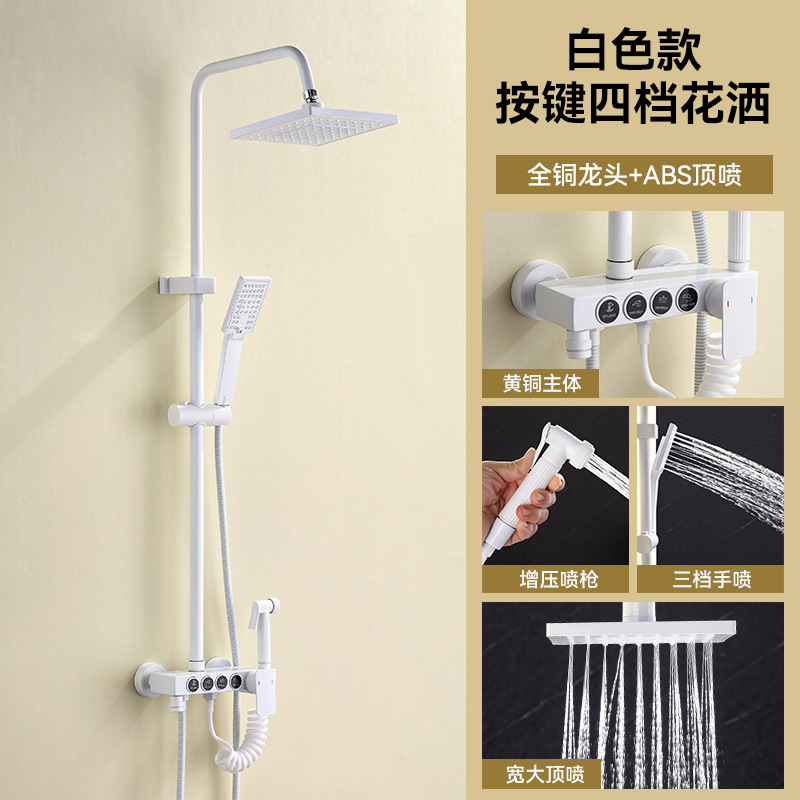 화이트 버튼 샤워 샤워 세트 욕실 모든 구리 비 목욕 가정용 욕실 화장실 배수 샤워 노즐