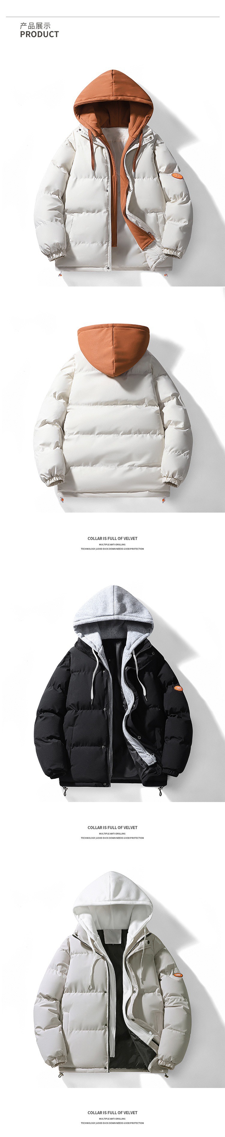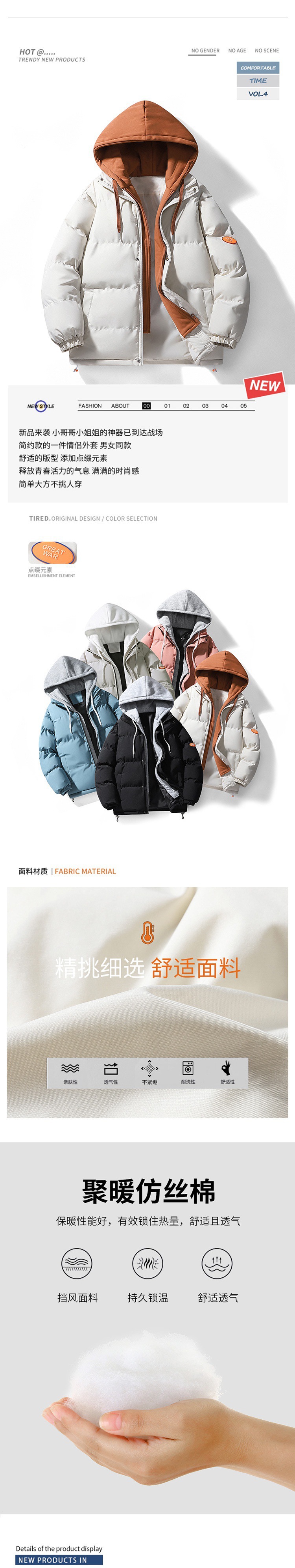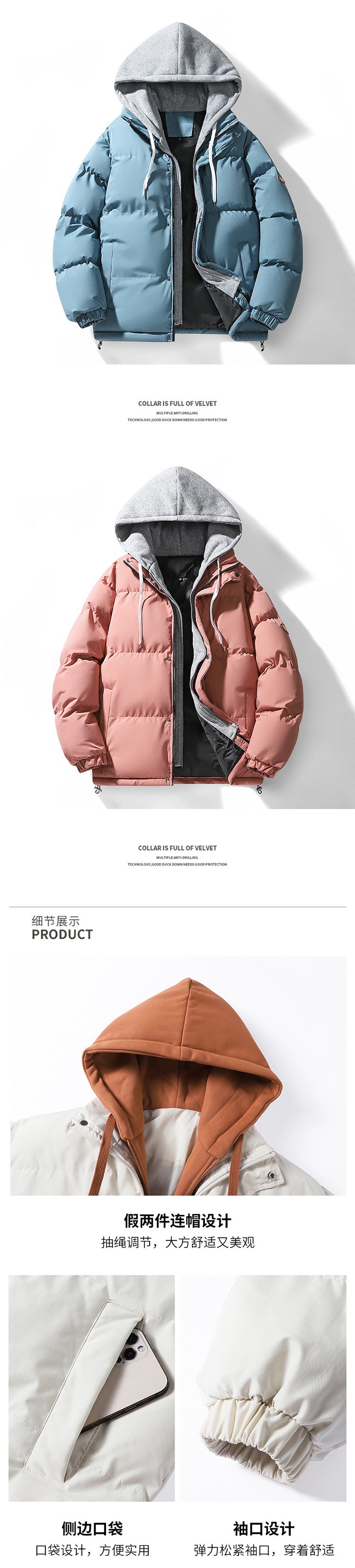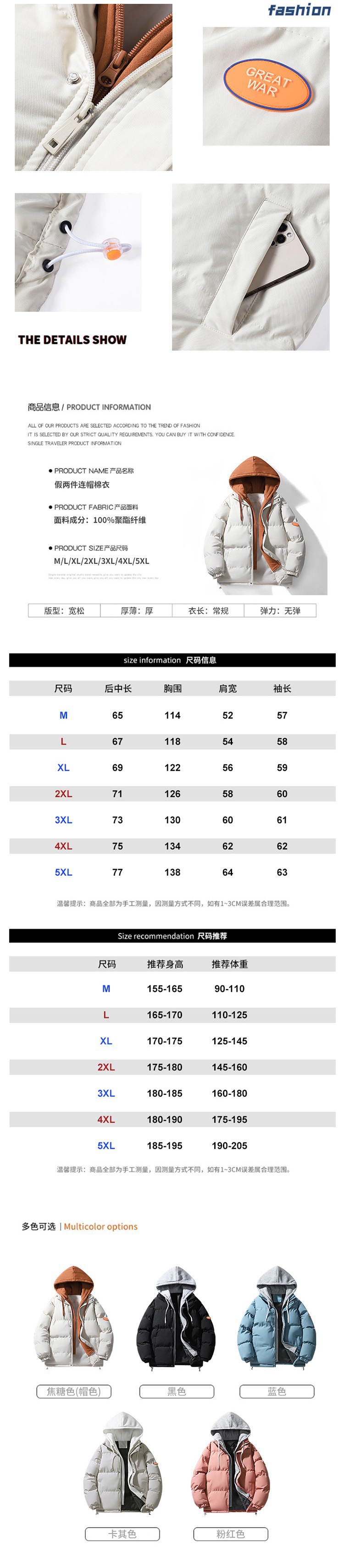 겨울 새로운 패션 가짜 투피스 면 코트 느슨한 빵 세트 학생 면 코트 유행 두꺼운 코트 후드 면 코트스토어 가기