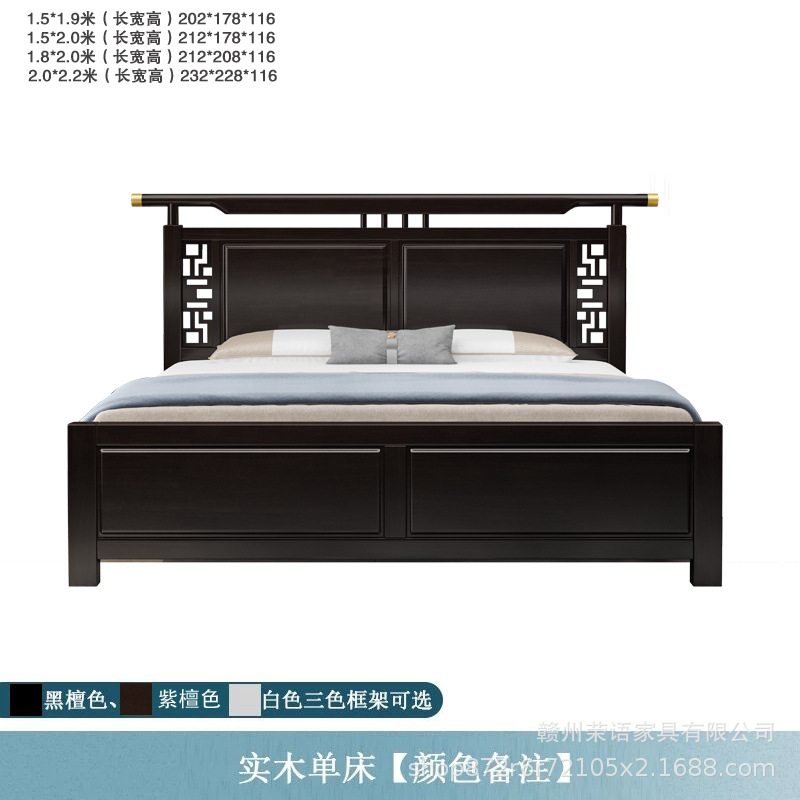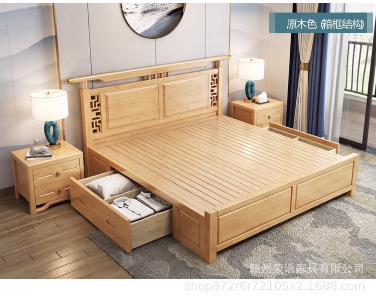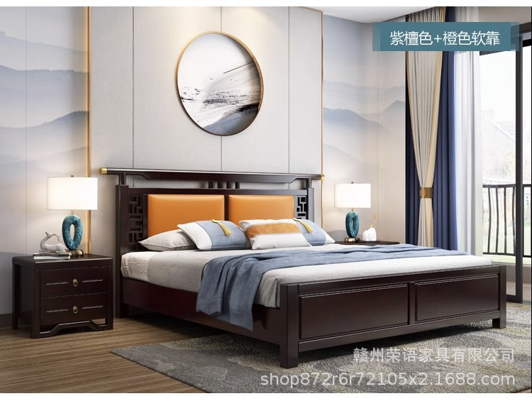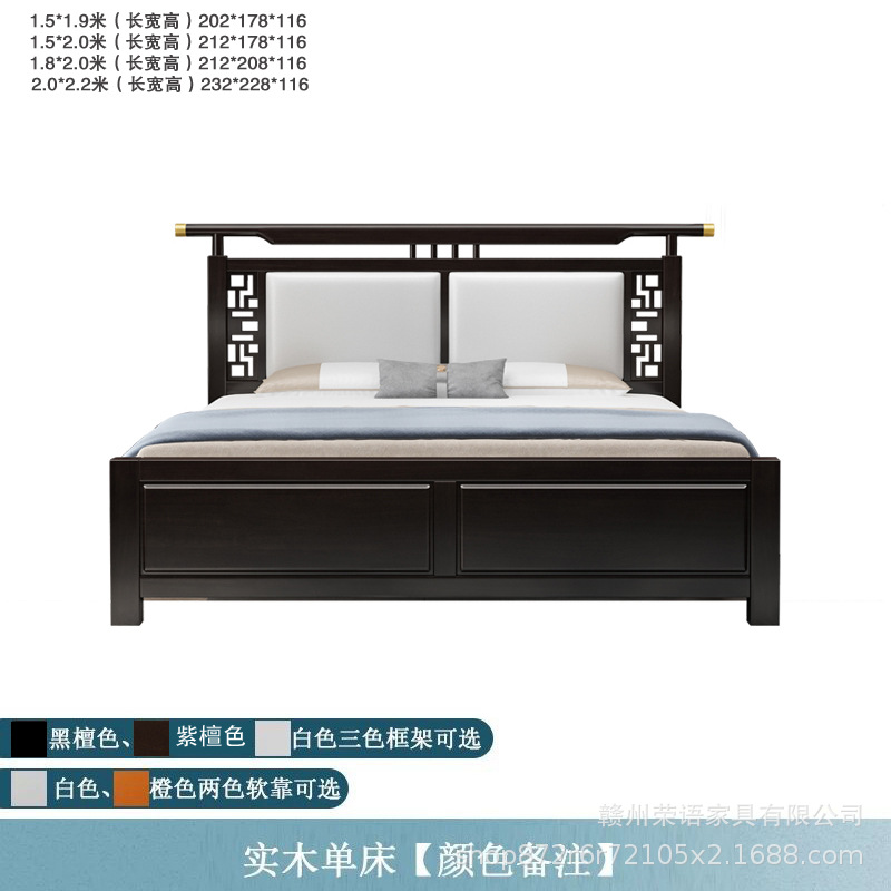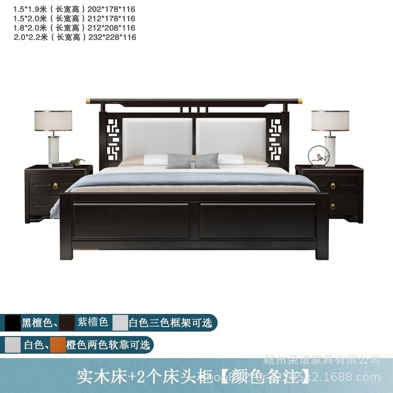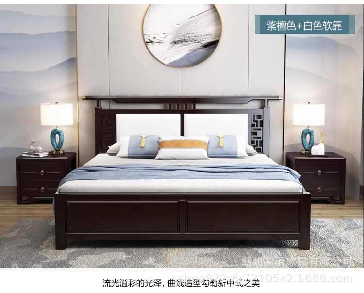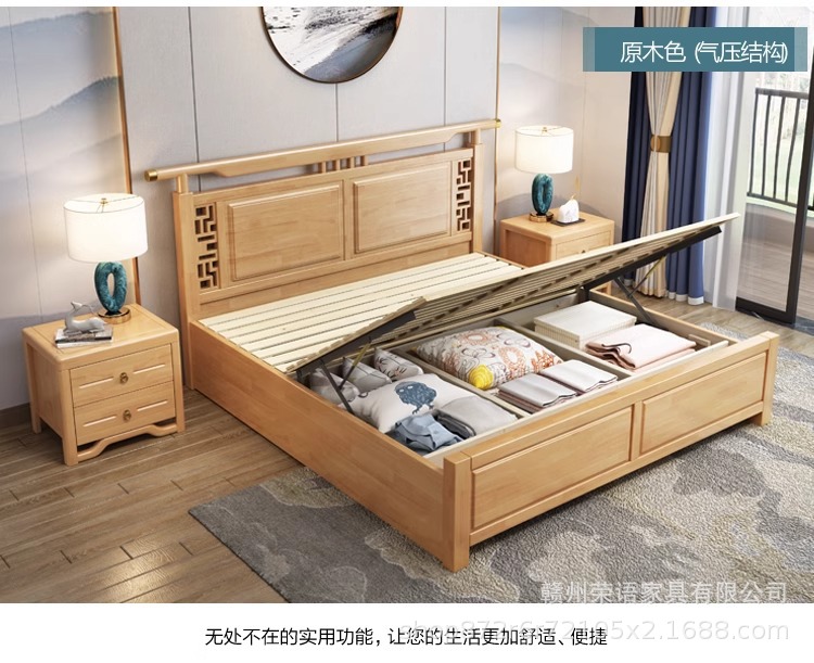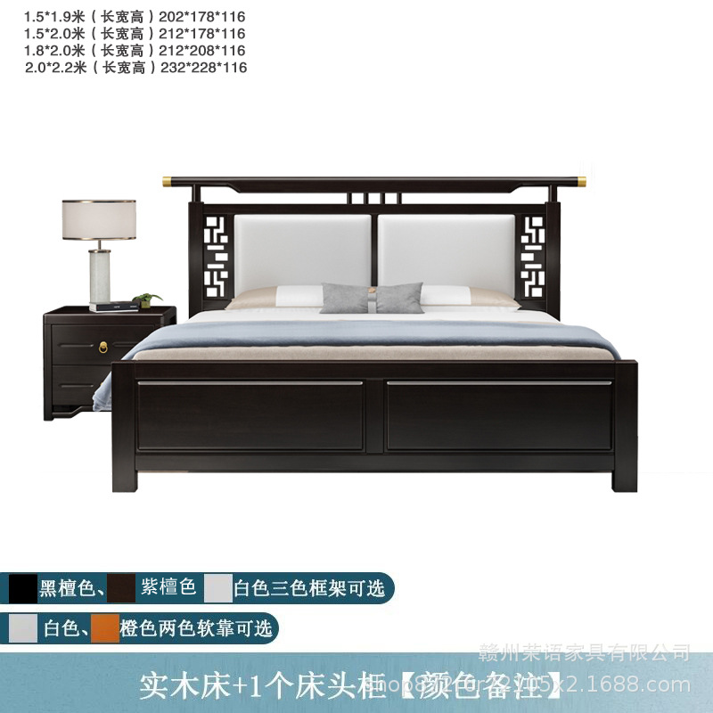 신중국풍 원목 침대 2m x 2.2m 마스터 침실용 더블 침대 1.5m 라이트 럭셔리 젠 스타일 소프트 등받이 수납 침대