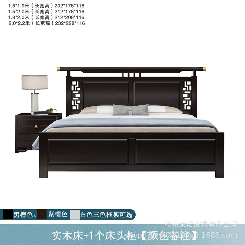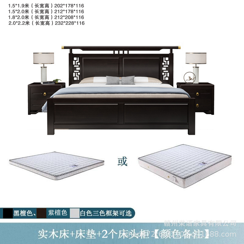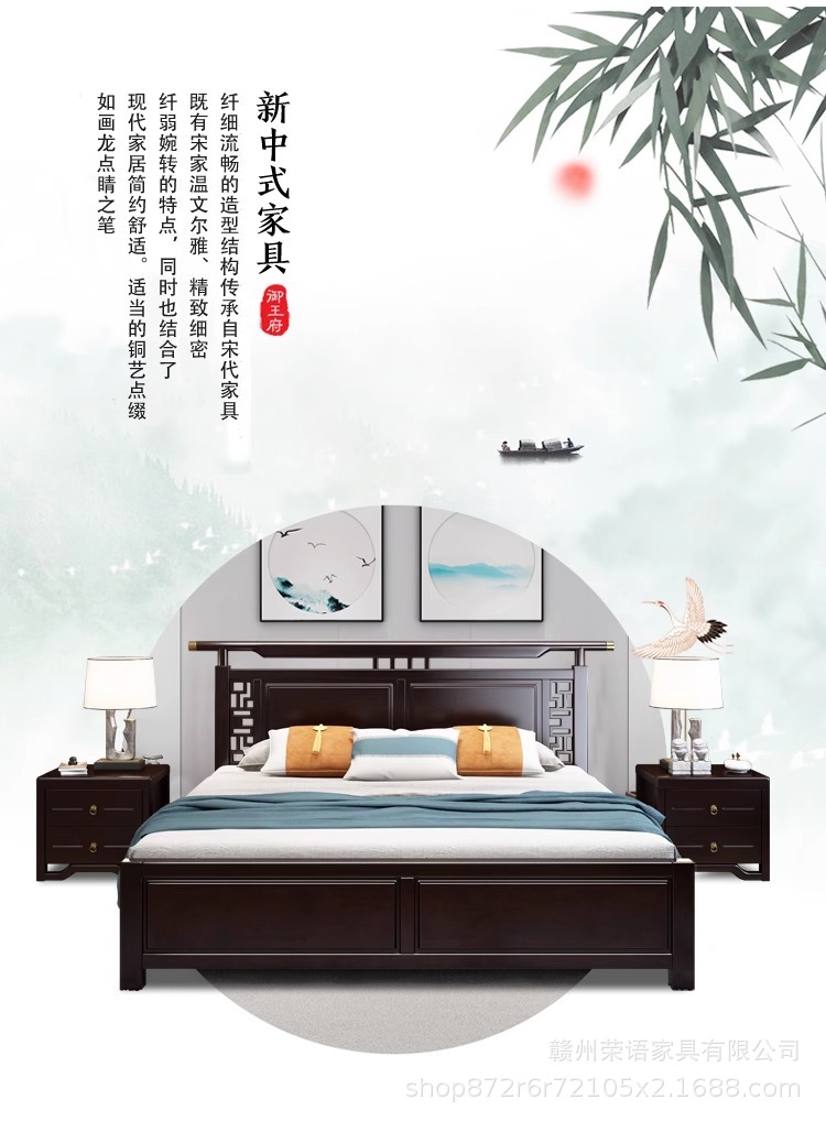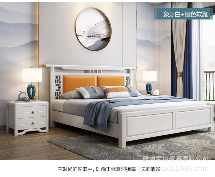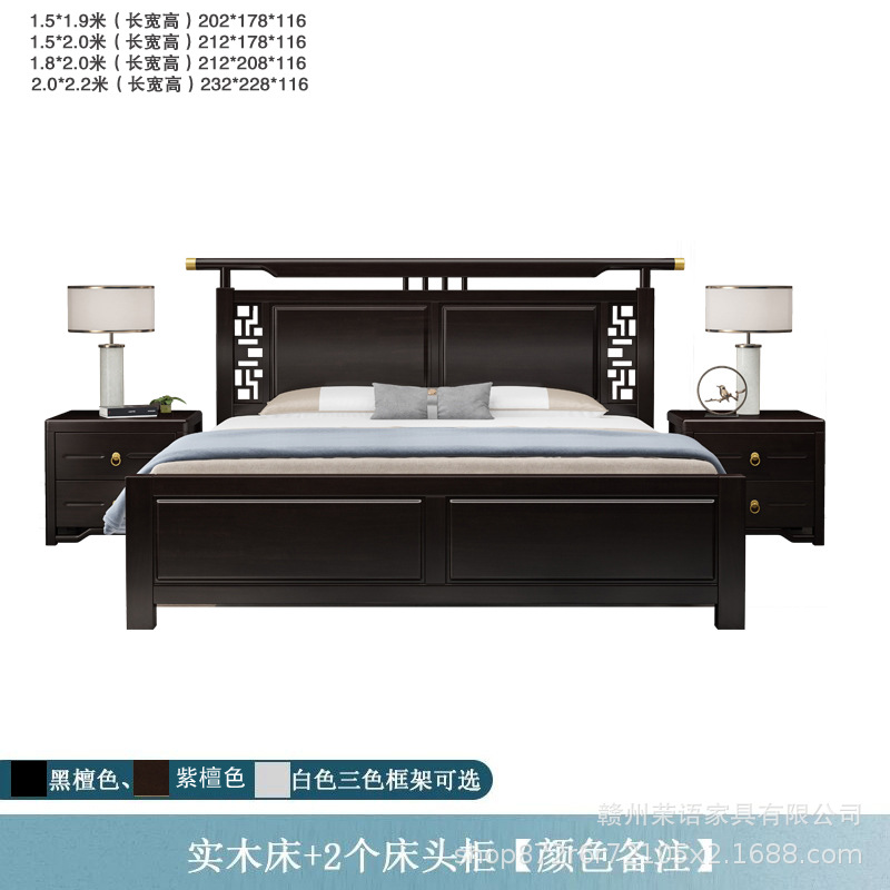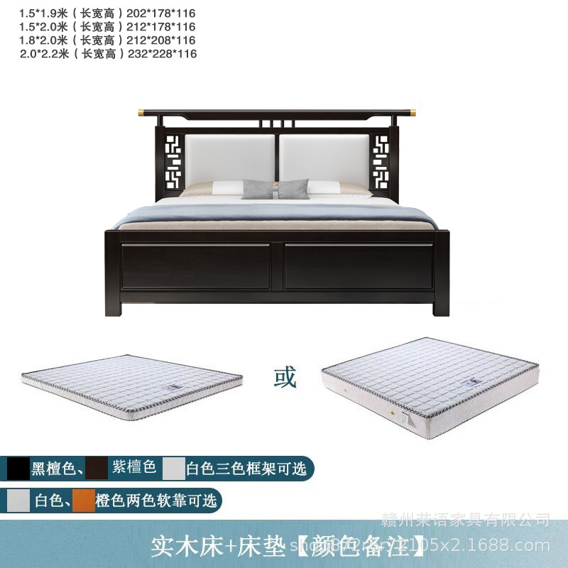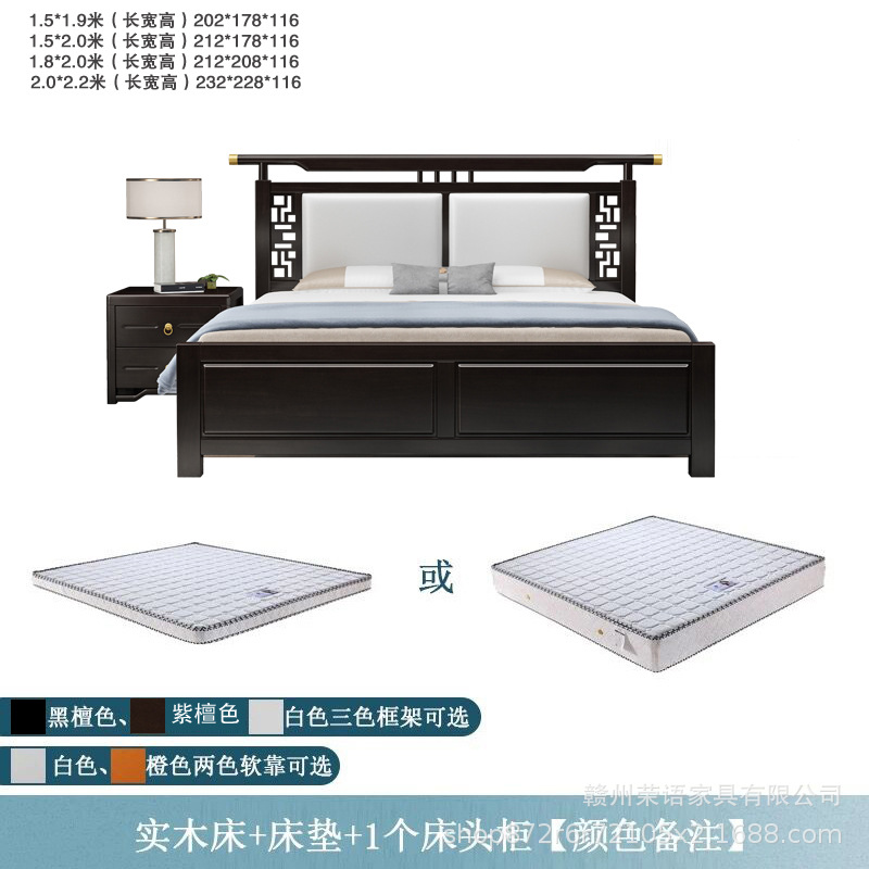 신중국풍 원목 침대 2m x 2.2m 마스터 침실용 더블 침대 1.5m 라이트 럭셔리 젠 스타일 소프트 등받이 수납 침대