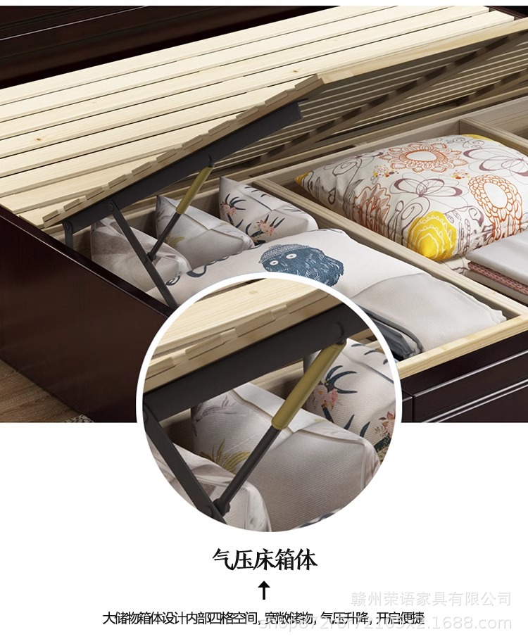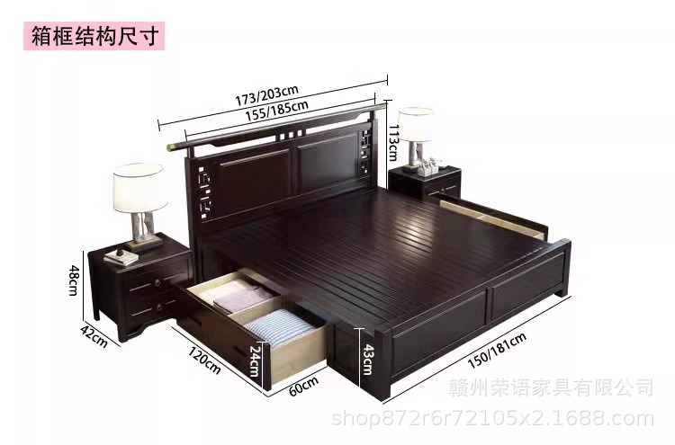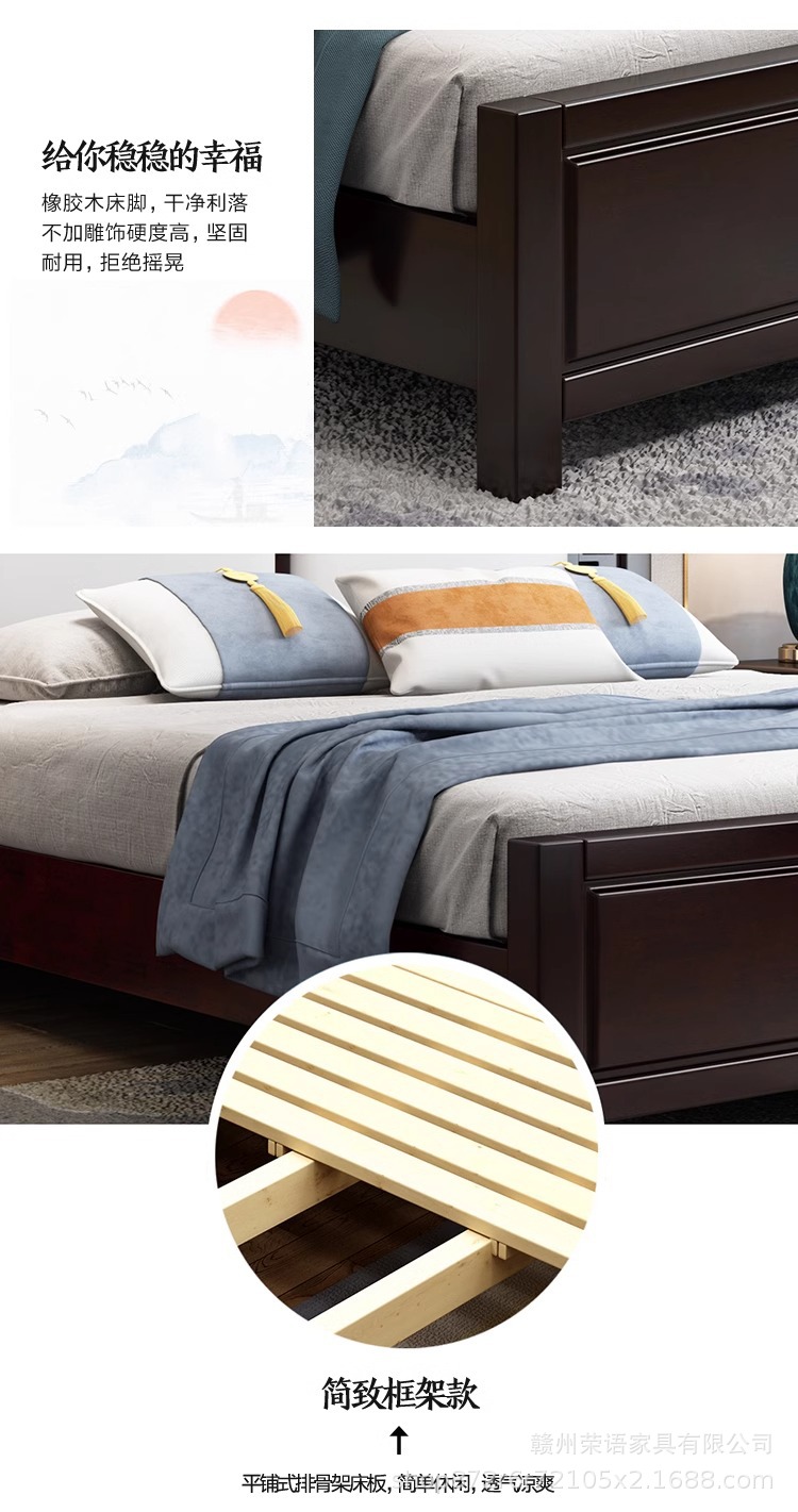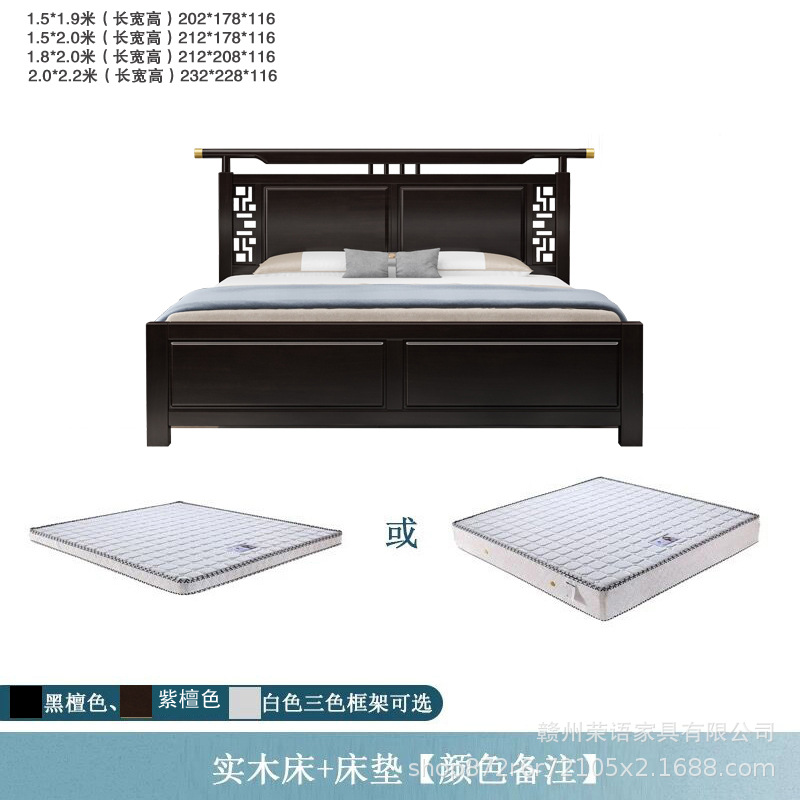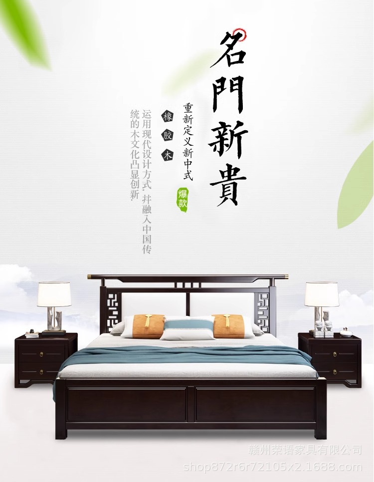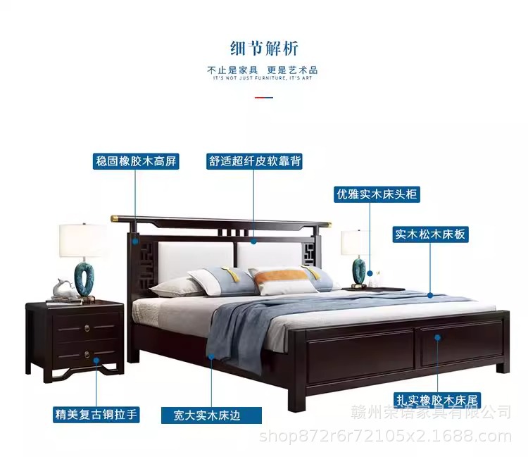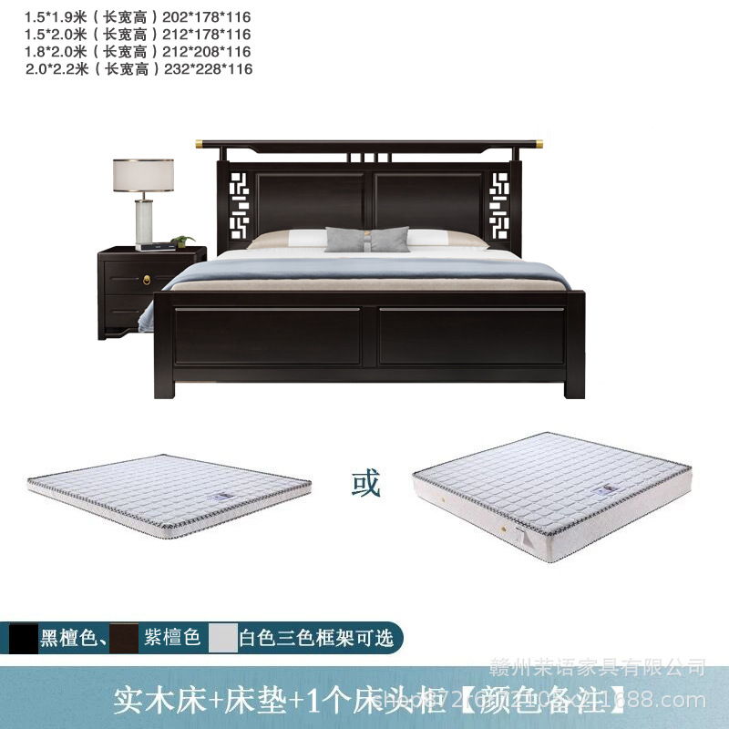 신중국풍 원목 침대 2m x 2.2m 마스터 침실용 더블 침대 1.5m 라이트 럭셔리 젠 스타일 소프트 등받이 수납 침대