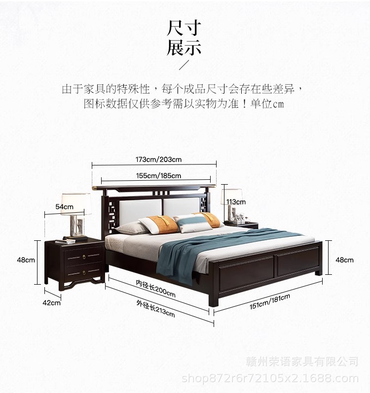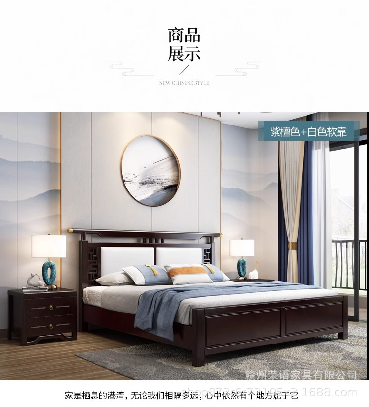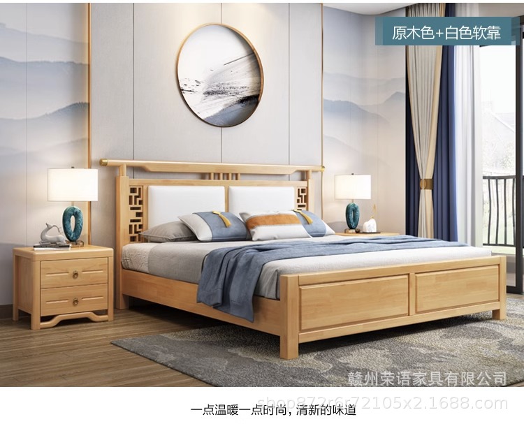 신중국풍 원목 침대 2m x 2.2m 마스터 침실용 더블 침대 1.5m 라이트 럭셔리 젠 스타일 소프트 등받이 수납 침대스토어 가기