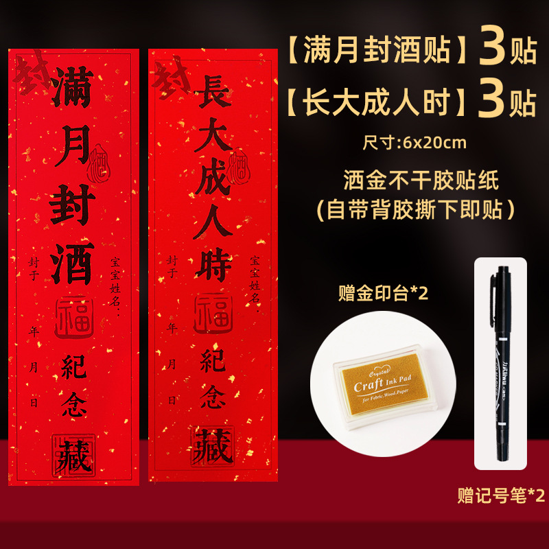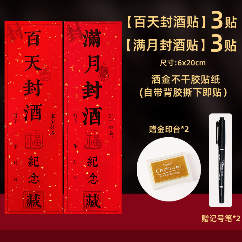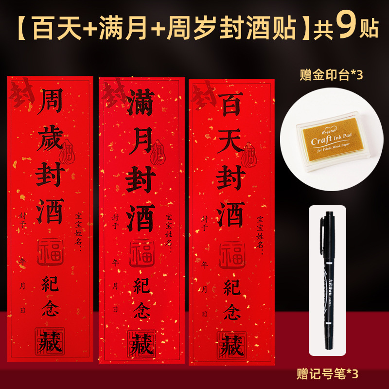• [보름달 + 100 일 + 1 세] 스티커 3 개/총 스티커 9 개 + 골드 인쇄 테이블 3 개 + 마커 3 개