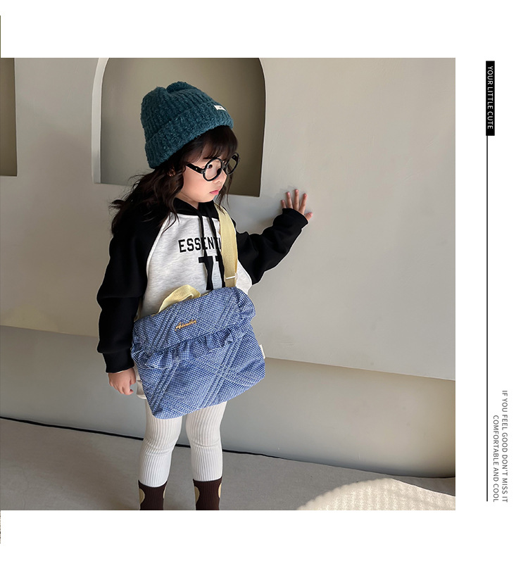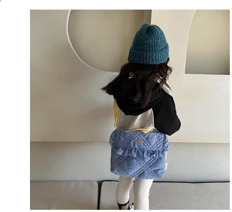 한국 인 새로운 여아 크로스 바디 백 세련된 레이스 핸드백 신선한 스타일 격자 무늬 액세서리 가방 어린이 배낭스토어 가기
