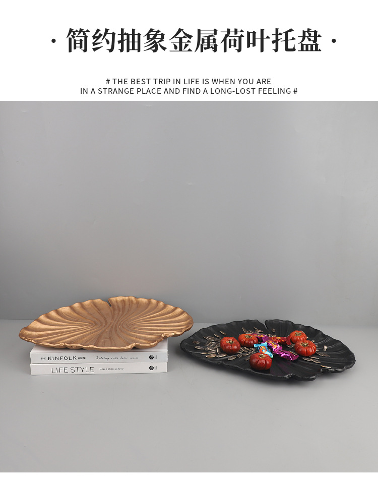 현대 간단한 추상 금속 연잎 트레이 장식품 거실 침실 복도 호텔 모델 룸 홈 장식