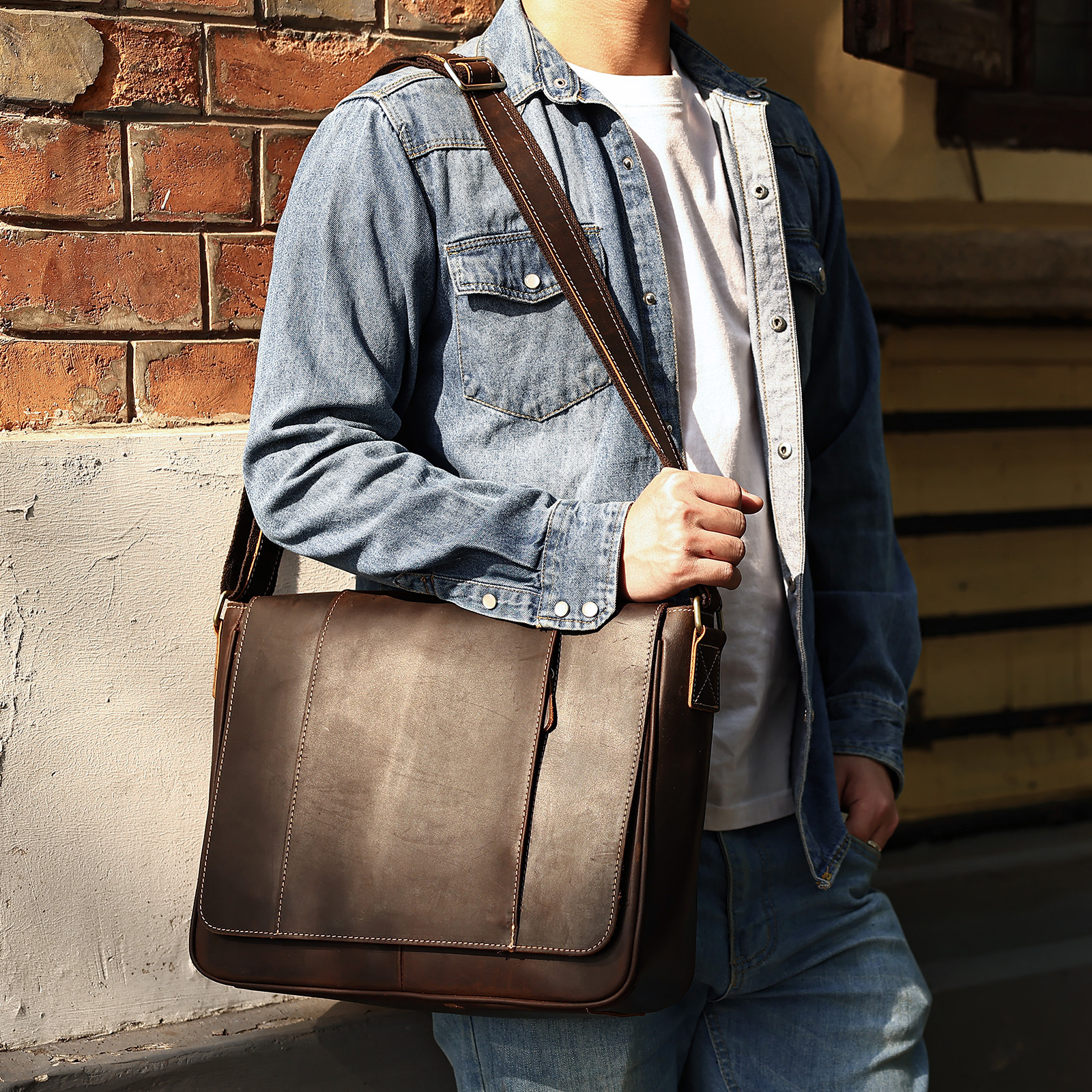 아마존 소가죽 수평 남성 가방 정품 가죽 비즈니스 남성 가방 오일 왁스 가죽 대용량 어깨 크로스 바디 남성 가방 도매스토어 가기