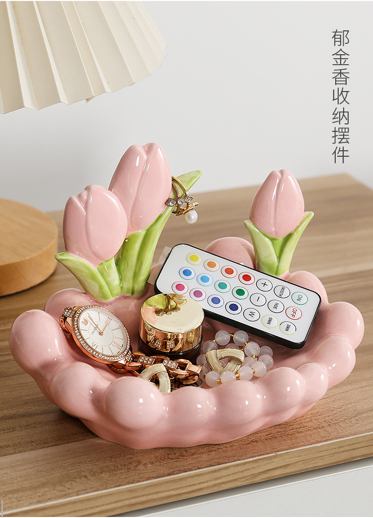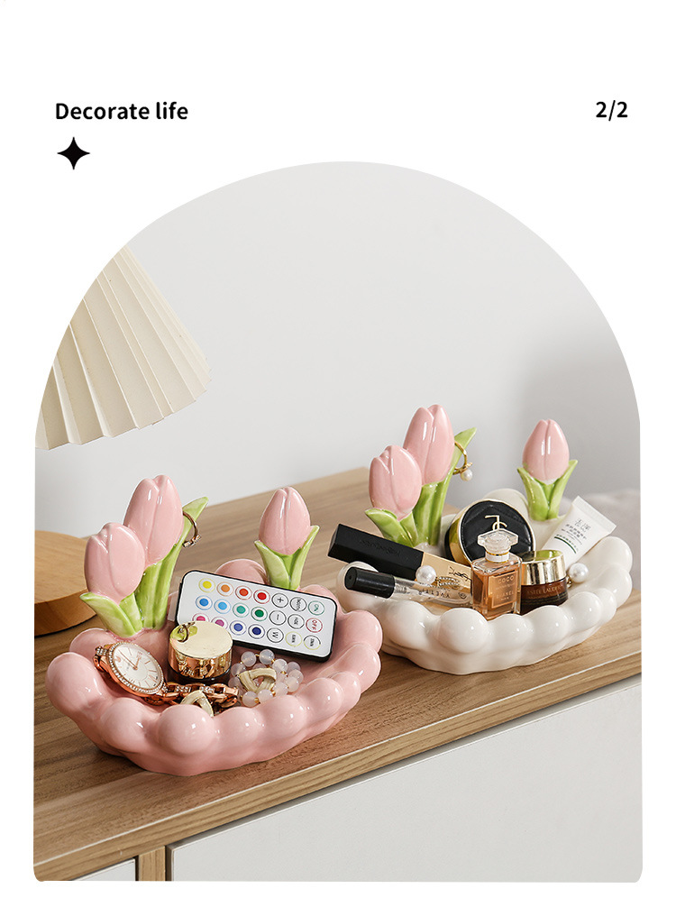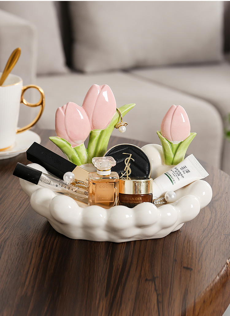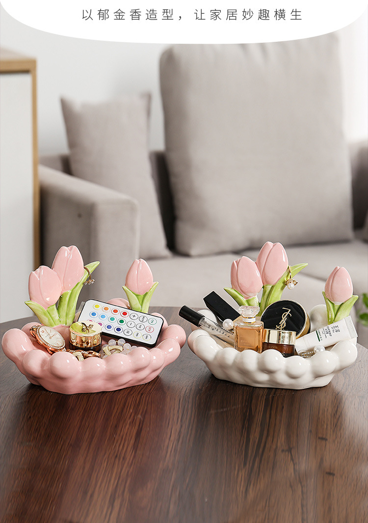 가벼운 럭셔리 고급 튤립 입구 키 보관함 데스크탑 트레이 쥬얼리 화장품 잡화 보관함