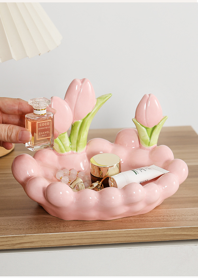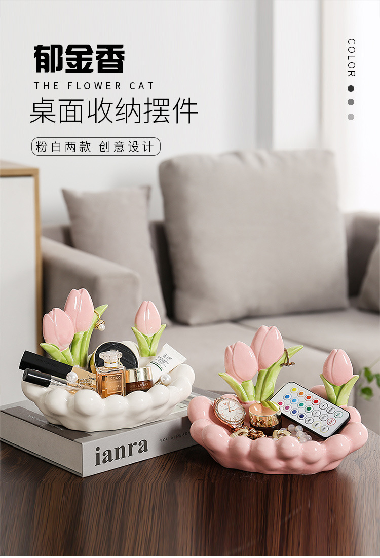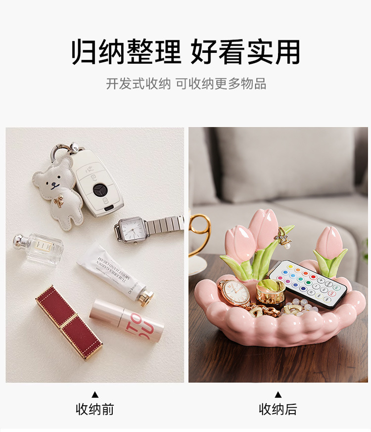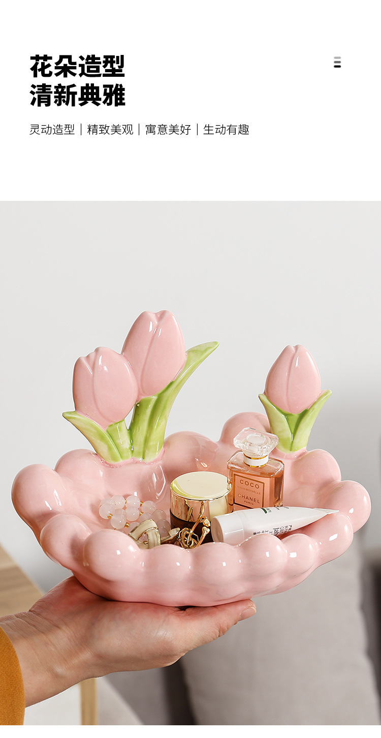 가벼운 럭셔리 고급 튤립 입구 키 보관함 데스크탑 트레이 쥬얼리 화장품 잡화 보관함