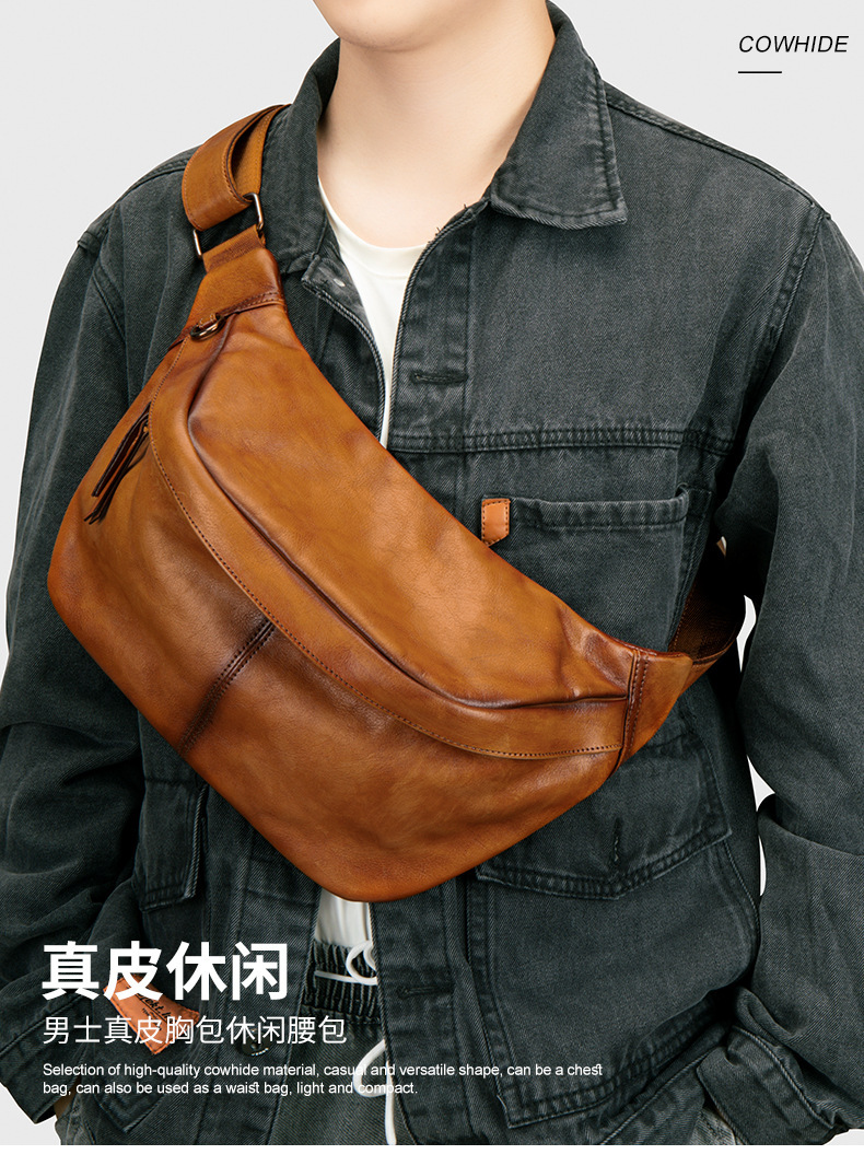 NIUCUNZH 소 가죽 허리 가방 대용량 편리한 남성 다기능 크로스 바디 가죽 가슴 가방 도매 남성 가방