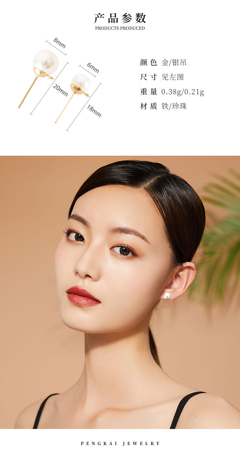 모조 925 실버 진주 귀걸이 귀걸이 귀걸이 둥근 구슬 이어핀 반제품 재료 DIY 보석 액세서리 도매스토어 가기
