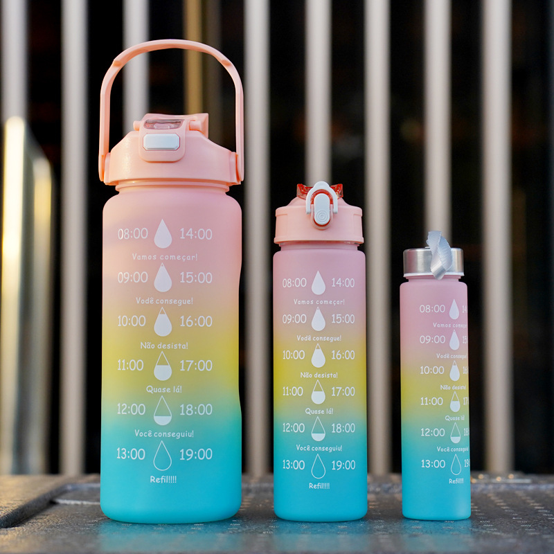 크로스 보더 아마존 매트 그라디언트 컵 3 세트 야외 휴대용 스포츠 주전자 대용량 컵 톤 플라스틱 컵스토어 가기
