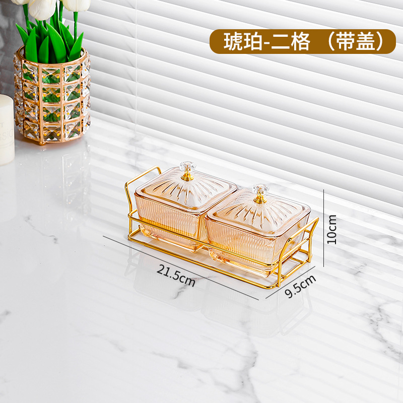 • 뚜껑이있는 황금 프레임 [2 그리드 호박색 줄무늬 유리 사각형 접시]
