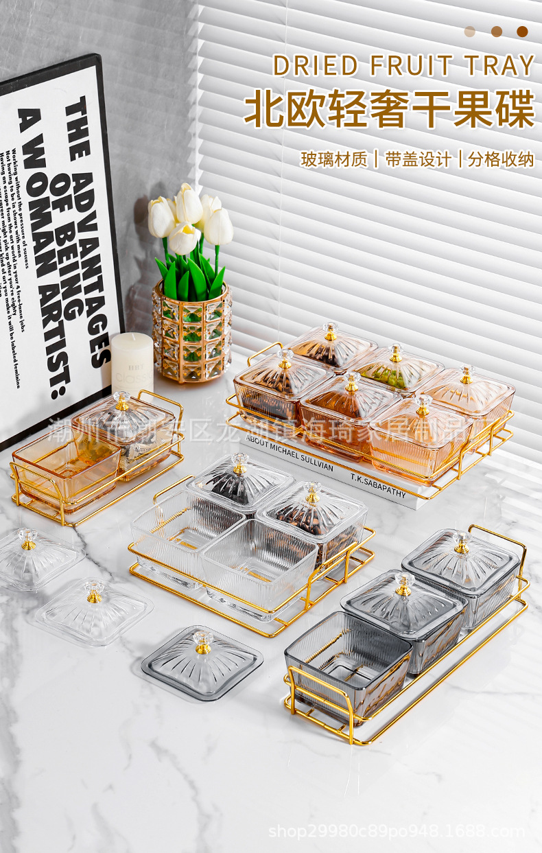 유리 디저트 그리드 플래터 가정용 말린 과일 플레이트 과일 플레이트 거실 차 유리 스낵 과일 플레이트 스낵 트레이스토어 가기