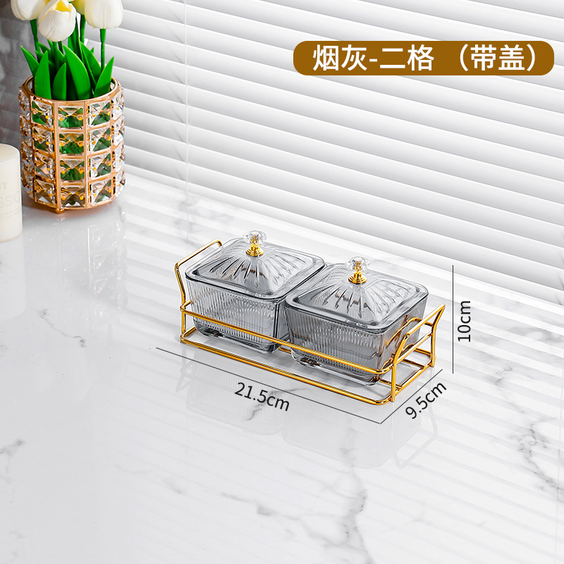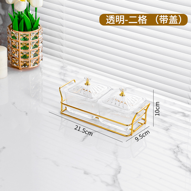 • 뚜껑이있는 황금 랙 [2 그리드 투명 줄무늬 유리 사각형 접시]